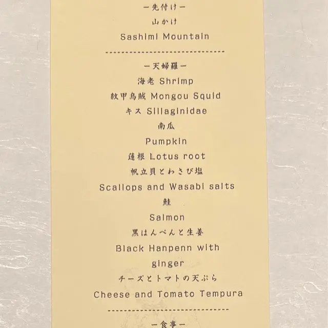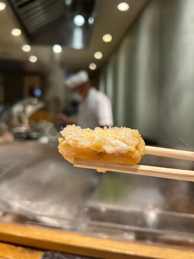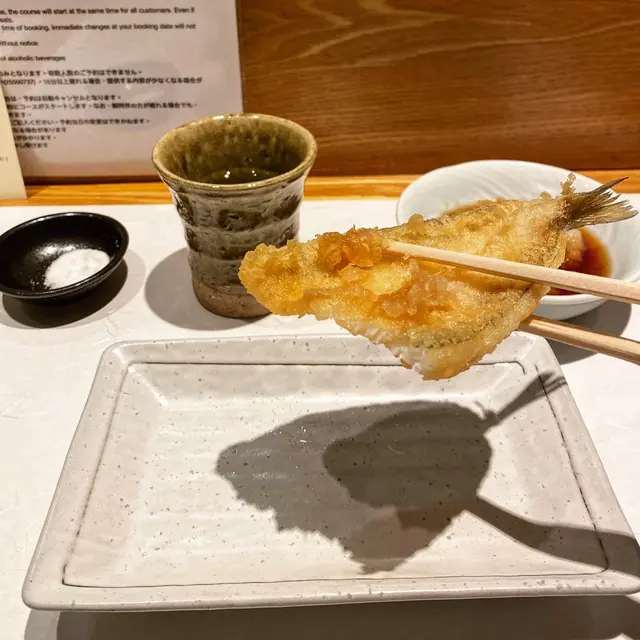 之前睇一個日本人介紹呢一間天婦羅omakase ,睇片好吸引,座位得10個所以好full,即刻上網book位都要等兩個月,點知臨有得食之前師傅返咗日本,又要遲多一個月先有得食,最終今日食到,真係好感動,等咁耐都值得🍤Omakase 得一個餐,全部都係天婦羅,作為一個天婦羅控真係超吸引,無論海鮮定蔬菜,都炸得好好食,材料新鮮,炸漿好薄,唔會油,一炸起即刻食好正印象深刻嘅係秋刀魚,炸完個樣都仲好生猛😆造型keep住,唔知係咪日本人嘅細心呢?前菜加8款天婦羅同炒飯,甜品,唔大食嘅夠飽,諗住一場黎到仲追加左兩樣嘢,炸蝦海膽手卷、和牛壽喜燒,兩樣都超好食,壽喜燒好食過其他餐廳😁另外環境乾淨,服務態度有禮,準時,真係好有日本感覺,如果遲到係冇得食咖,所以全部人都好準時,抵讚👍🏻查看更多
