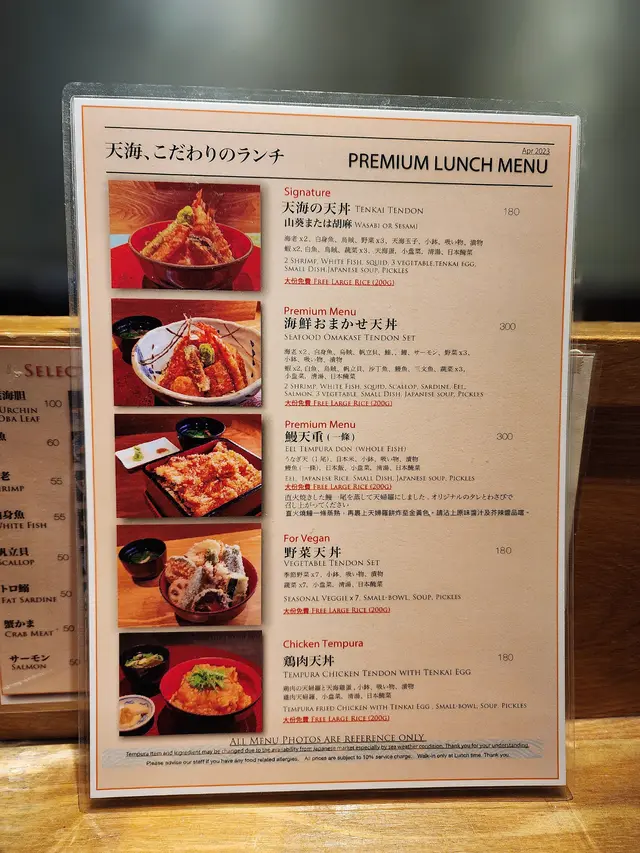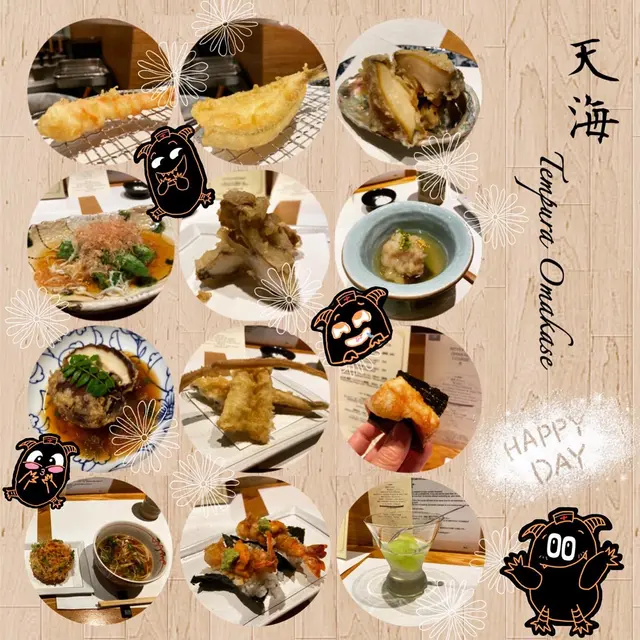 是咁的~ 好耐冇寫過食評今次遇到好西決定要再次出山因為有事慶祝所以早左一個月已經訂左黎天海到食,之前一直都有聽講過天海係由日本師傅主理所以一直都想黎試試天海做緊平日晚市優惠,$500一位都可以食到omakase,呢個價錢都真係幾吸引嫁Omakase係由日文"任せる"(makaseru)演變出黎,有住委托嘅意思,簡單講啫係"你話事"咁解,所以而家menu上見到嘅野食係會隨住師傳因應食材時令而改變嫁。一入座職員會問你飲咩,而同一時間師傳就會準備食材,食omakase最重要係可以近距離欣賞到師傅熟練嘅手藝,個人覺我係一種享受同埋係對師傳一種尊重黎前菜係南瓜肉碎南瓜煮到好淋而且食落好甜配合埋肉碎嘅咸香,味道好夾好醒胃第一道就係炸蝦天婦羅呢一樣簡直係天海嘅Signature炸漿薄脆,蝦嘅鮮甜味十足而且一d都唔會好乾好柴,保持到彈牙口感。每一件上枱果陣都會有職員(廣東話)講番係點天婦羅汁定係點鹽食,呢件海老就係點鹽,而我覺得最正係用手(食指同母指)夾起少少鹽,然後手指前後捽咁樣灑d鹽落去,咁樣比起成件夾起去點更加均勻,唔會食落突然覺得有啖咸左d,灑d鹽上去令到件海老更加鮮甜,好正第二件係魷魚呢件要好小心因為係超級熱亦都係灑鹽食,一樣係會帶出魷魚嘅鮮甜,而且食材新鮮所以同時食到炸漿嘅酥脆同魷魚嘅爽脆,係雙重口感呀!第三件係一款白身魚(而我唔記得左咩名,應該係沙鑽),呢款魚開頭入口比較輕盈清新,但慢慢食落去都有幾香嘅魚味,白身魚黎講係絕對合格嘅味道跟住到冬菇呢件菇一定俾你地想像中好食,菇味好濃又有菇汁(唔係廢話),呢件點天婦汁係非常好食,完全發揮到件食材菇之後係另一款蔬菜,豆兩款蔬菜係一樣咁出色,呢款豆好脆好甜跟住係帆立貝天婦羅配山葵鹽呢件食材係非常高質,而且好講炸嘅時間,好易過時就變柴,炸唔夠時間又會唔夠熟,所以呢件係食師傳嘅工藝多過味道,講真個人覺得帆立貝點都係刺身先食到最鮮甜嘅果一面再黎就係三文魚,呢到係兩人份量黎,呢件天婦羅整嘅步驟要煩多少少,炸完之後師傳係需要做resting,相信係用時間俾餘溫去煮三文魚最中心嘅位置而唔直接延長炸嘅時間去避免三文魚肉變得比較乾同柴。呢件上碟果陣已經淋左醬汁所以唔洗要去點盬/天婦羅汁,味道亦好好,保持到三文魚香之外仲可以keep到有肉汁,估唔到三文魚都可以咁樣整做天婦羅最後登場就係穴子,亦啫係海鰻,而平時經常食到嘅鰻魚係淡水魚黎,所以佢地食落口感都好唔同,穴子係好綿滑又帶淡淡嘅香味,天婦羅嘅做法係將穴子口感帶到另一個層次,酥脆同綿滑同一時間呈現面前,鐘意食穴子嘅人係必試Menu上最後嘅主食係飯,今日個菇飯幾特別,用到薑汁去整,不過個人都麻麻地薑喇呢個係壓軸重頭戲和牛壽喜燒,呢樣off-menu,需要訂位果陣已經要預訂(兩位起),唔係黎到想食都冇人幫到你喇兩個字﹕必食!和牛非常極之咁靚,放入口係化開牛味濃而且好重油香,放入口果刻包你好食到講唔到野有人話點解omakase賣咁貴,我覺得除左食材靚之外,最重要係食果種匠人精神。日本傅統一個壽司師傳係要由執頭執尾開始做幾年先一步步去做準備食材果個,隨時用上10年時間你先可以握第一件壽司俾客食。天婦羅師傳都係一樣,一炸就係一生,一生懸命,或者唔係人人能夠理解,但佢地都係會繼續專注自己嘅工作,就睇下有幾多知音人去賞識佢地喇查看更多