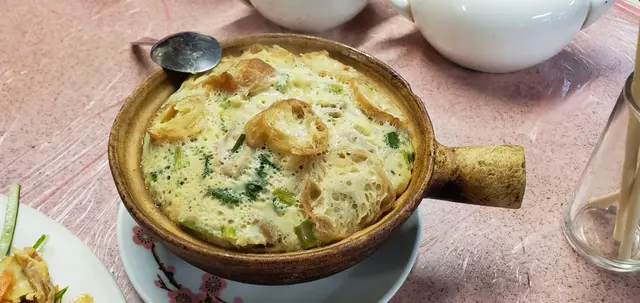 同啲舊同事行完大東山,就佢哋落咗去黃大仙食飯,成日都想嚟大成街市試下小炒,咁啱就過嚟補給下。三個人唔叫得多,我就最想試過順德拆魚羹,另外就嗌咗個芥末骨。另外個同事就話要個雜菜煲走油先上載個拆魚羹,行完山凍凍地飲完成個人暖曬。個芥末骨都做得好好,唔會炸得大乾,鎖得住啲肉汁。再加埋個芥末醬相當醒胃。雜菜煲最後上,但最後都係冇走油。不過煲仔唔落油又真係好惡搞。食到咁上下,跟住見到隔籬枱有啲白色嘅碗。問吓侍應,原來係燉牛奶。咁就嗌咗兩碗大家分享吓,出奇地好食唔太甜又夠滑,呢個真係要推介。唯一最先上㗎大良炒鮮奶就杰身咗少少,唔夠滑,同埋好搞笑,裏面有叉燒粒。但整體上十分滿意。查看更多