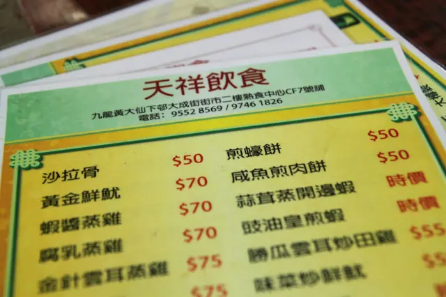 約左朋友去九龍塘睇8點戲見有時間就唔想同人迫揀左去黃大仙食飯之前睇雜誌見到介紹呢間順徳菜當中介紹嘅蒸豬肉看上去好好吃我和友人都是住新界的要看地圖才找到路以為找到大成街市就安全原來街市有幾個入口人流旺,每層都好大十分鐘也找不到上二樓熟食市場的電梯最後問問街坊就找到了6點多到場整個二樓只有三兩檯還以為中伏見到第二間鋪,粉紅色膠枱布的就是天祥坐下就跟伯伯說:我們想點蒸豬肉呀伯伯走進廚房回來說:賣完了本來我打算打電話去留蒸豬肉的可是這一早電話沒人接伯伯說:吃扣肉吧。也好好吃的看看圖片,好像不錯,就點了友人睇左餐牌一秒就決定了芥辣鮮魷!味道同食材都係友人喜歡的我有個疑問:原來順徳菜有wasabi的?熱噴噴送上的第一道聞得到的攻鼻吃一口魷切的很薄炸皮脆脆的芥辣醬真的沒有騙人看上去以為是沙律醬加一點綠色吃下去鼻子和眼晴立刻通了非常意外地好吃過了一會炸鮮奶到每一顆都只有一元硬幣的大小這個皮比鮮魷的更脆內裡的奶醬黏黏的暖暖的一口一口吃著加上鮮魷的芥辣醬也好吃吃得半飽扣肉就來了原來是南乳汁我好喜歡我唔特別好食葛不過佢切得薄薄夾埋肉食,都好味不過最美妙係切得厚薄剛好的腩肉啲肉炆到一篤就散開連肥膏入口直情會溶化好罪疚嘅美食呀食到7點左右整個熟食市場都坐無虛席所以我地爬快兩啖飯埋單讓張枱俾第二輪客食左3個送加白飯都唔洗百五蚊飽到傻抵到爛做街坊生意嘅人情味小店買少見少搵個同你食茶記街市嘅朋友比食麥記嘅更珍貴啦:)查看更多