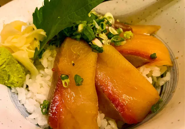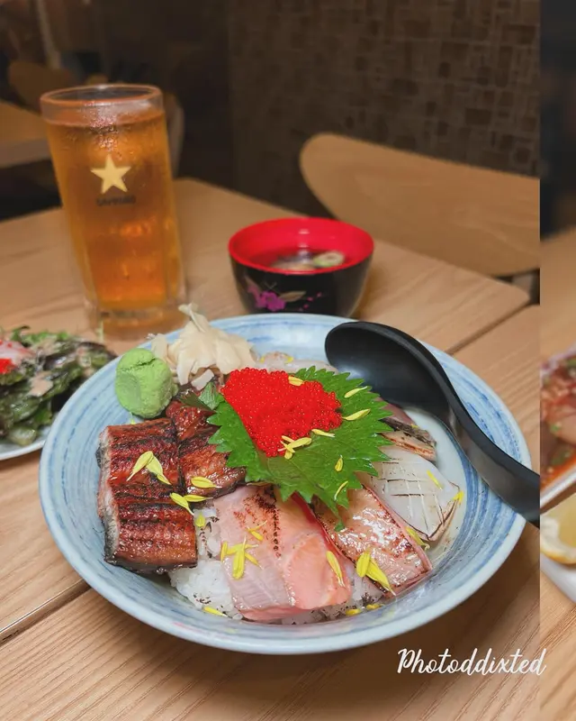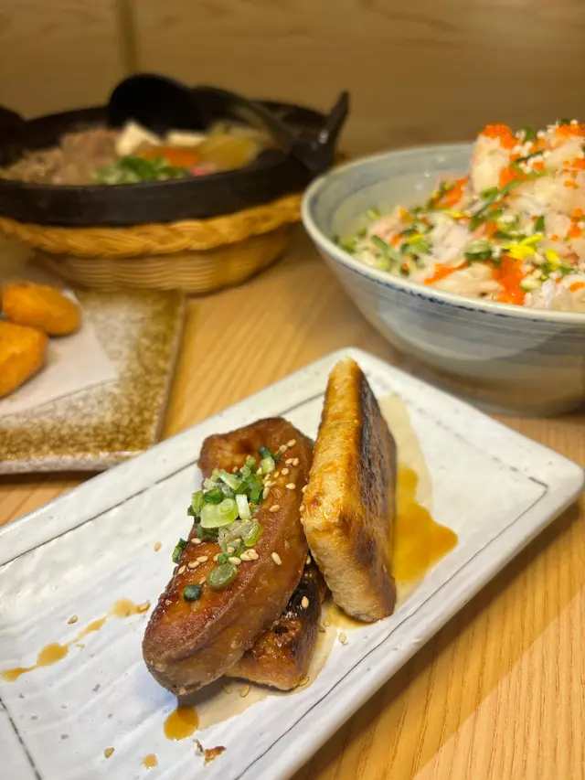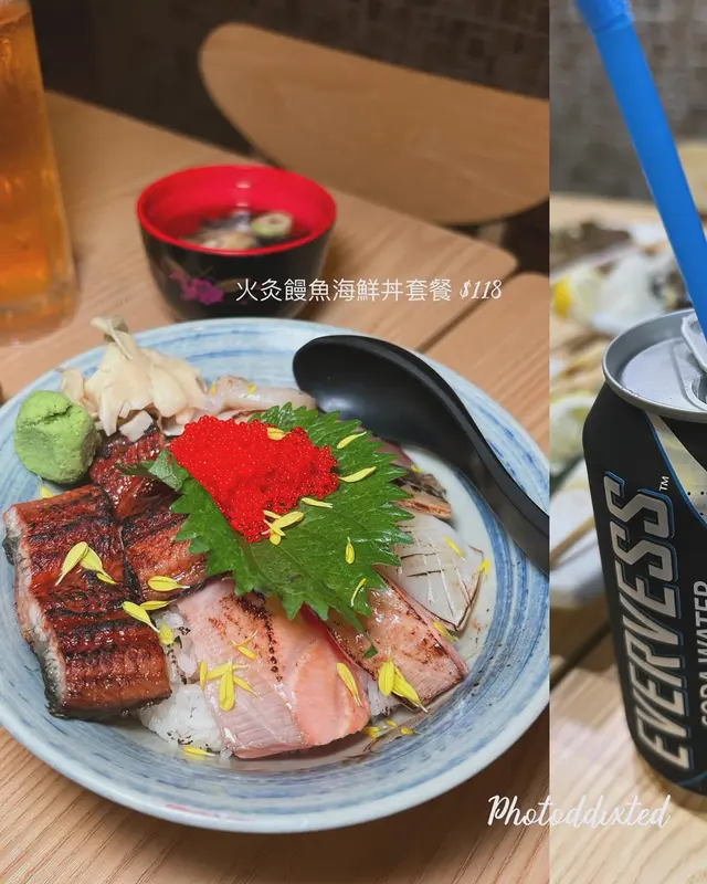 荃灣路德圍一帶有幾多小店性價比唔錯、價錢較為親民,喺昌泰街內搵到間日式居酒屋,門口餐牌有串燒食價錢唔貴就入去試下餐廳佈局有啲日本古早風格,牆上啲日本海報充滿懷舊氣息○ 山梨橙白桃酒●首先點杯冰凍果酒消暑,外面天氣真係好熱。微甜桃子水果酒,回溫後酒精感提升○「一品」日本沖繩海葡萄●咁悶熱天氣食涼拌小菜最合口胃。每次在餐廳見到有呢個都一定點,海葡萄口感輕輕卜脆脆、咀嚼時有少少汁液在口腔內爆發,點附上的日式醋汁味道更覺sharp醒○燒三文魚頭●當晚見menu有特價即時加單點嘅、好彩無走雞
