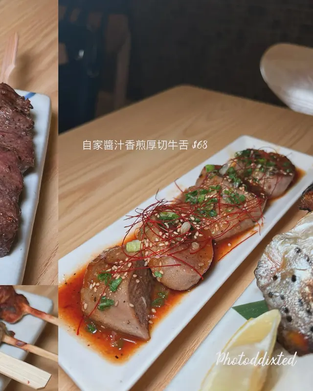 ○燒新鮮白鱔串●新鮮與否本人無從稽考,但見佢個魚皮烤到脆卜卜,鱔肉色帶點金黃,老實講都幾香幾惹味 ○日本華味鳥雞頸肉串燒●雞頸肉燒得幾香脆惹味、下酒菜無誤○阿波(德島)酢橘雞肝串●難得無燒過龍保持到肉汁,有內臟的質感帶啲油份○豬舌串燒●牛舌平時點得多、今次轉下口味嗌燒豬脷。覺得呢度嘅豬舌口感較實要多嚼、做得唔夠軟腍○冬菇串燒●純粹想食啲蔬菜調劑下,呢個冬菇還好有啲菇香,一試無妨…查看更多
