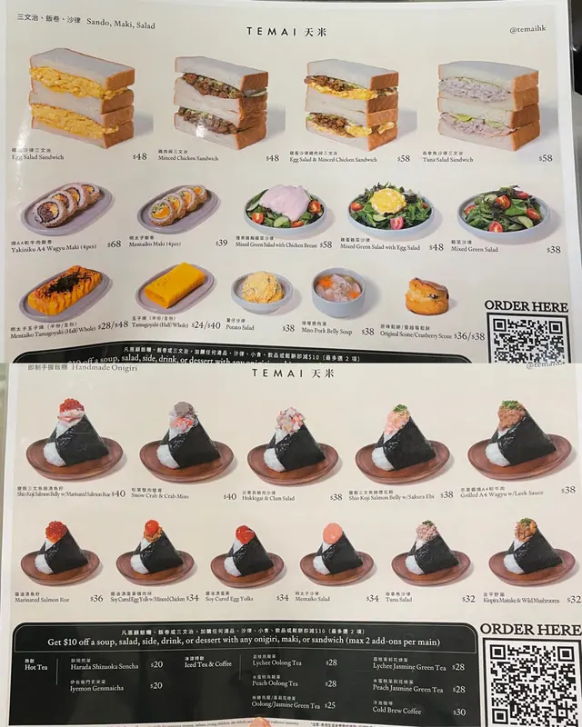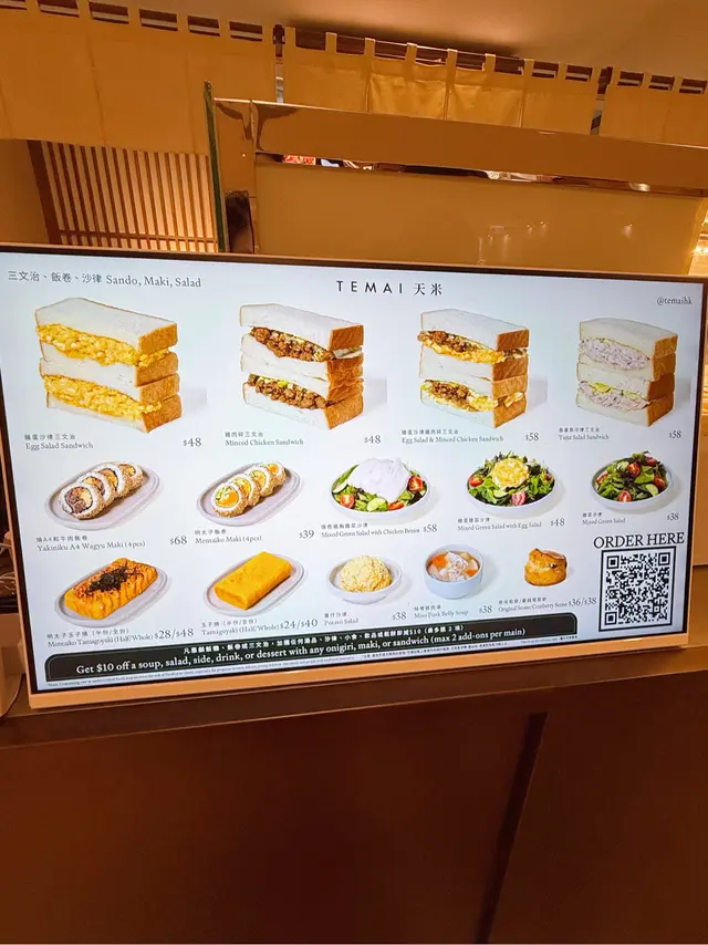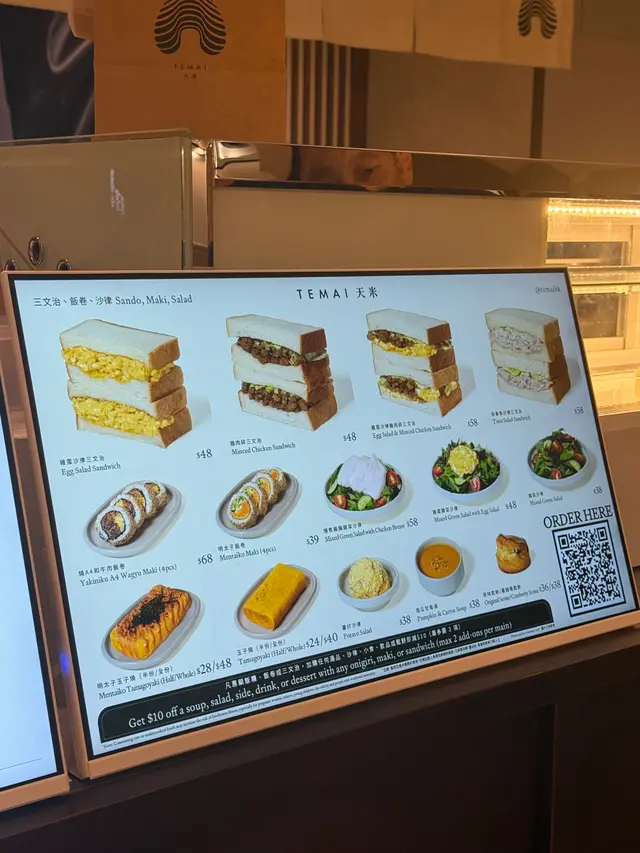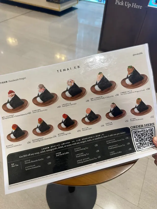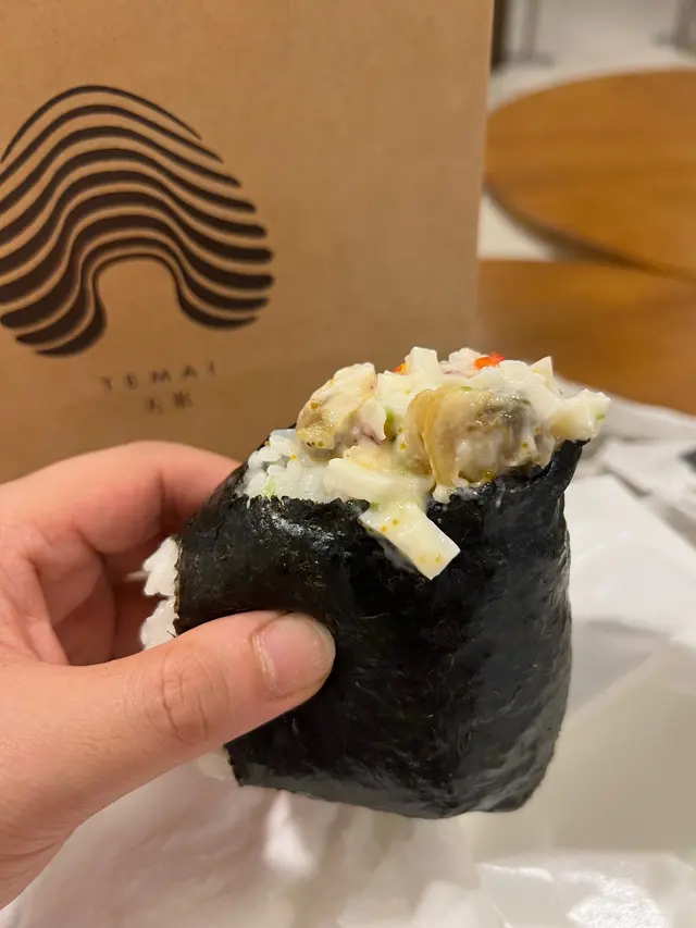 做完運動經過中環好肚餓,醒起置地廣場有間日式飯團店TEMAI 天米,佢哋有多款飯團、飯卷、三文治、玉子燒…每日新鮮製造,仲要有套餐選擇,加錢有餐飲,全部都係外賣包裝,乾淨又時尚嘅包裝又好容易拎,店鋪仲設有少少立食位,真係輕食好選擇。雞蛋沙律三文治,麵包層層分明,配合中間嘅雞蛋沙律,味道好滑潤且唔會過膩,雞蛋鮮甜與蛋沙律好夾。明太子飯卷,飯卷嘅海苔香味突出,濃郁嘅明太子醬鹹香中帶啲微微嘅鮮甜,飯卷入口煙靱有口感。松葉蟹肉蟹膏飯團,蟹肉鮮甜Juicy,味道層次豐富,加上蟹膏嘅細膩口感,非常滿足。玉子燒有明太子、原味揀,仲可以揀成份同半份,玉子燒充滿蛋味,有淡淡甜味,加入明太子嘅鹹香,口感層次豐富。…查看更多