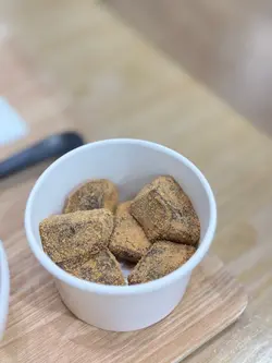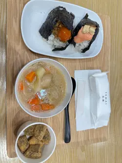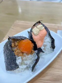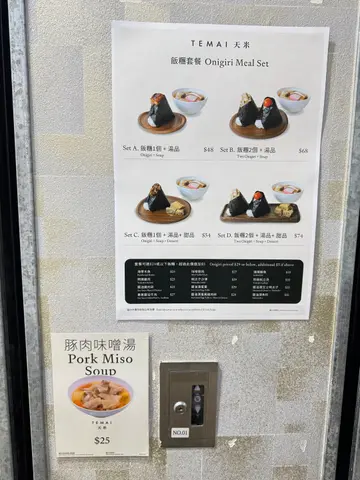 超强台风要来了,梗系要去超市扫下货,顺便食埋嘢添啦。是晚就嚟到湾景广场嘅天米,听人讲话呢间啲手握饭团好好食,见佢有餐有散点价钱合理就试下先😋餐牌有十二款饭团同三款小食,叫餐可以跟汤跟甜品或者全部都要😆小店只有一名员工,由排队落单到出餐都真系需要啲时间。点咗两份最丰富嘅Set D,包括饭团两个加汤品加甜品,见薯仔沙律同玉子烧咁平,又每人加咗一客。朋友话望落个饭团唔大,于是佢又追加多一件,我心谂你系咪真系食到咁多嘢㗎😝⭐明太子沙律 & ⭐酱油渍芝士明太子先试明太子口味嘅饭团,明太子咸香鲜味,下得很多,每一啖饭都食到明太子🤤朋友仲要加埋酱油芝士,𠮶份咸味更有层次,软绵绵有香口,朋友话酱油渍芝士唔知点解感觉有啲似腐乳添😆⭐香葱酱油牛肉 & ⭐酱油渍蛋黄 & ⭐酱油渍蛋黄鸡肉碎第二件就系酱油渍蛋黄,味道浓郁咸香,有酱油同埋麻油味,蛋黄仲有蛋香添㗎。朋友就食佢升级版有埋鸡肉碎,鸡肉碎甜甜地,同咸鲜嘅蛋黄混埋一齐又几好食㖞。最后就系试埋个香葱牛肉,味道感觉有啲似得吉x家,好食都好食,但因为牛肉比较大块,咬饭团嘅期间啲牛肉好容易松开,而跌到一碟都系😅呢款口味食得比较狼狈。⭐味噌猪肉汤汤品系味噌猪肉汤,入面除咗猪肉片,仲有洋葱、薯仔、红萝卜,饮到蔬菜嘅鲜甜,而且饮完唔口渴👍⭐薯仔沙律好喜欢食日式嘅薯仔沙律,钟意佢个沙律酱混埋蛋黄,软绵绵起晒沙,淡淡薯仔蓉好正,沙律酱唔酸又唔会水流流,好味又饱肚😋⭐明太子玉子烧玉子烧口感一般,正在上面有明太子酱,明太子酱真系配咩都特别好食。⭐QQ饼最后甜品系蕨饼,黑糖口味配上黄豆粉,口感Q弹香软,甜度只系微甜,无日式和果子𠮶种甜到腻嘅感觉,呢款啱口味,黄豆粉好香啊😋饭团虽然望落唔大,但其实份量十足,一个都有成碗饭咁上下,呢餐真系超级饱,咁好食好满足😍…查看更多