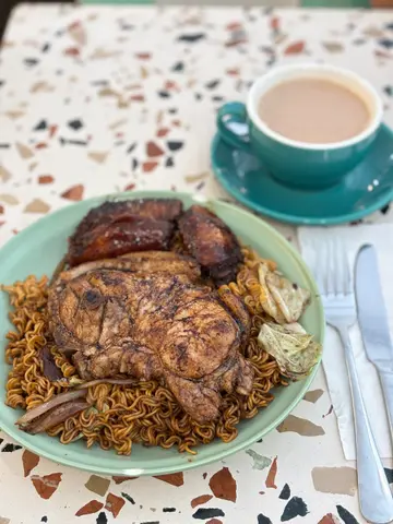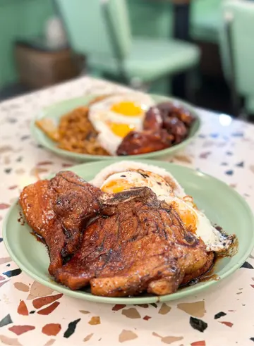 Finally tried out Tin Fung, which is famous for their 𝒉𝒖𝒈𝒆 pork chop rice and swiss sauce chicken wings! This is a great budget option too if you’re looking for a filling lunch in Central! 🐷 Pic 1️⃣: 瑞士汁鸡翼蛋炒公仔面 / 𝗙𝗿𝗶𝗲𝗱 𝗜𝗻𝘀𝘁𝗮𝗻𝘁 𝗡𝗼𝗼𝗱𝗹𝗲𝘀 𝘄𝗶𝘁𝗵 𝗖𝗵𝗶𝗰𝗸𝗲𝗻 𝗪𝗶𝗻𝗴 𝗮𝗻𝗱 𝗙𝗿𝗶𝗲𝗱 𝗘𝗴𝗴 𝗶𝗻 𝗦𝘄𝗶𝘀𝘀 𝗦𝗮𝘂𝗰𝗲 - $68 hkd 🍳 🍗 — Super satisfying plate and portion sizes here are very generous for sure! The noodles soaked up all the flavours of the swiss sauce nicely and were well seasoned. The sauce is definitely more on the sweeter end though and I would’ve preferred this to be slightly more savoury. The wings were super tasty and flavourful, and the meat was tender too. Noodles could’ve done with a few more seconds as they were a little harder than preferred. The sunny side up egg sealed the deal here and went so well with the dish.Pic 2️⃣: 炼奶西多士 / 𝗧𝗼𝗮𝘀𝘁 𝘄𝗶𝘁𝗵 𝗖𝗼𝗻𝗱𝗲𝗻𝘀𝗲𝗱 𝗠𝗶𝗹𝗸 $38 hkd 🍞 — Who can resist any HK-style french toast? This was perfectly deep fried, giving it that crunchy, indulgent shell that encapsulates this creamy, pillowy soft interior that is smothered in an aromatic peanut butter. It’s then finished with a drizzle of condensed milk to create the perfect french toast. Would’ve like to have a bit more condensed milk for that extra milky flavour, but otherwise this was perfect!Pic 3️⃣: 豉油皇厚切猪扒蛋饭 / 𝗣𝗼𝗿𝗸 𝗖𝗵𝗼𝗽 𝗮𝗻𝗱 𝗙𝗿𝗶𝗲𝗱 𝗘𝗴𝗴 𝗥𝗶𝗰𝗲 𝘄𝗶𝘁𝗵 𝗦𝗼𝘆 𝗦𝗮𝘂𝗰𝗲 - $65 hkd 🐖 — Would you look at the size of that pork chop?! The pork chop definitely stole the show here as it was really well marinated, tender, juicy and full of flavour. The soy sauce went nicely with the pork and fried eggs too. Overall a very fulfilling plate to fill you up!…查看更多