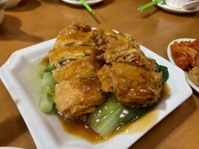 呢個就係西檸鴨,素鴨係用幾塊腐皮拎去炒炸,表面同個心都係脆,而且好薄,食落口感,完全沒有層次。甚至唔係豆品舖做過一款素鴨,拎去炸。就咁拎啲腐皮去摘,然後俾個醬你自己點就話係西檸鴨,極度求其。咁你不如直接攞啲響鈴放喺個篋度。芋頭魚係交嚟嘅都係嗰啲味呢樣嘢係三樣嘢最好食嘅。呢個賽螃蟹嚟到嘅時候心諗應該終於有一樣嘢好食,點知嗰啲蛋白入面竟然有啲新嘅紅蘿蔔勁腥草青味,又要加啲明膠蝦粒碎落去好古怪,夾落去嗰個好似起晒泡嘅蛋白口感非常難食,完全唔係喺啲油度慢慢推啲蛋白,好似食緊炸蛋白咁,西蘭花白沙冇驚喜,任何調味都冇埋單$260兩個人,下次狗都唔食再嚟講埋個環境唔知點解可以唔開冷氣講緊而家雖然立咗秋,但係都27度啊,焗到_街又要食埋呢啲炸嘢油淋淋勁辛苦,希望菩薩保佑你長做長有…查看更多