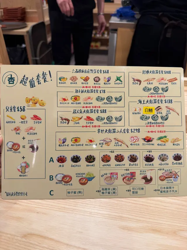 今日同朋友到杏花邨食飯,去到餐廳不需要等位就可以入座 。我們叫了兩個套餐,海老野菜天麩羅盛合配漬物,蜆魚湯烏冬和珍寶穴子海皇天麩羅盛合配漬物,味噌湯,蜆魚濃汁蕎麥麵 。另外再加了天婦羅:紫蘇煙三文魚海蝦,比目魚 。兩杯飲品沙棘乳酸特飲和抹茶拿鐵。首先是海老野菜天麩羅盛合,裡面有新鮮的海蝦、黑虎蝦、南瓜、粟米仔等,搭配的漬物清爽可口,為整體味道增添了層次感。天婦羅的外皮酥脆,內餡卻保持著海鮮的鮮嫩,尤其是黑虎蝦,肉質彈牙。另一道珍寶穴子海皇天麩羅盛合,珍寶星鰻魚的獨特風味與北海道帶子的鮮甜相得益彰,搭配的味噌湯更是濃郁,讓人感受到溫暖的滋味。蜆魚濃汁蕎麥麵的口感滑順,湯頭清爽,完美平衡了天婦羅的油膩感。我們還額外點了紫蘇煙三文魚海蝦和比目魚的天婦羅,三文魚的鮮美與海蝦的彈牙,紫蘇的香氣在口中瞬間釋放,帶來一種清新的感覺。飲品方面,沙棘乳酸特飲的酸甜適中,與抹茶拿鐵的濃郁香氣形成絕妙的搭配。整體而言,食材的新鮮,價格合理 。…查看更多