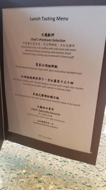 @天龙轩今日同友人去icc食呢间米芝莲餐厅,餐厅要预先一个月前才book到window seat,呢个海景真系难得呵!入座后职员细心介绍茶叶种类,并奉上好好味嘅餐前小食:虎珀合桃📌中东吉品鲍鱼酥挞皮酥脆而不腻,餐厅好细心已经将鲍鱼切半,鲍鱼有爽弹感,配上鲍鱼汁,好食📌黑毛猪叉烧(半份)叉烧好大旧,好淋,有啖啖嘅蜜味,好味下次一定要试下西班牙叉烧(因为今次冇预订啰)📌蟹肉黄金卷酥皮好脆,吾油腻,内有满满嘅蟹肉📌蜜汁脆鳝呢个系有啲失望嘅,炸皮唔够脆,淡淡鱼肉📌带子窝夫带子香脆而不腻,配上松化嘅窝夫,层次紧丰富📌鲍粒荷叶饭上枱已经闻到震震嘅荷叶香,蒸得啱啱好,每啖都食到鲜味嘅鲍粒总结:望住呢个醉人嘅维港海景,打下卡,已经值回票价食物方面,质素中上水平,唔可以话天花板级数,但系都唔失望服务方面,职员细心友善,见我哋两个女仔就建议我地叫半份环境方面就唔使讲啦100分,打卡位置非常多…查看更多