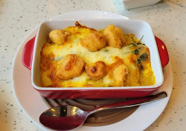 葡汁芝士菠菜猴頭菇焗黃金蛋炒飯
