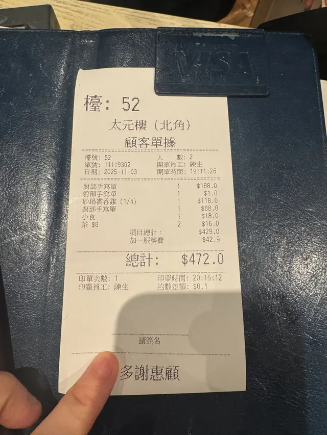 終於等到我最愛的北京填鴨 記得小時候, 有一年媽媽問我有甚麼生日願望,我答:要食北京填鴨多年來,我對北京填鴨依然有種莫名的喜愛不知道是愛鴨皮的香脆,愛大蔥的辛辣,愛青瓜的清香,還是愛那盤濃濃的秘制醬汁總之將這幾樣東西放在一起,用那薄如蟬翼的面皮一包。這就是我心心念念的北京填鴨啊﹗近年來,大家都為求分得一鴨多片,將北京填鴨都變成了北京肉鴨。肉比皮還要多難得太元樓的北京填鴨依然以皮為主,肉為次,沒有失去了北京填鴨的精髓而且皮下也沒有厚厚的脂肪肥膏,更是一讚。 填鴨外皮呈誘人的琥珀色,薄如蟬翼却帶着令人惊艷的酥脆感,一夾便能听到 “咔嚓” 的清脆聲響。這裏的北京填鴨還可以追加成炒鴨絲,生菜鴨崧,鴨骨湯,以及醬爆鴨骨。每一款我都想試呀。但今晚人太少,唯有下次多叫幾個朋友黎一齊追加是夜沒有叫飯,點了也是最愛的小籠包每一个小籠包都像是一顆 “汁水炸彈”,咬下的瞬间,湯汁瞬间湧出,肉香鮮美,一口一個。幸滿感滿滿黑芝麻豆漿沒有豆漿的青草味,也沒有過度的甜膩,獨帶有黑芝麻的醇厚焦香,健康又好喝。這個價錢,老實說, 我覺得幾超值的。…查看更多
