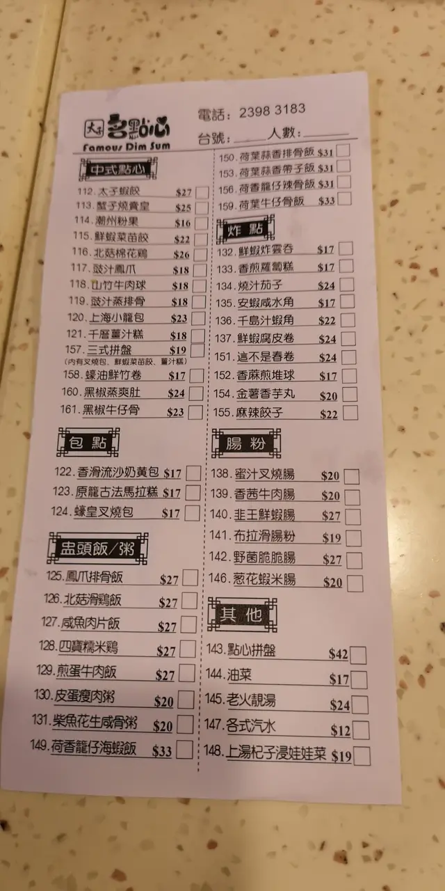 今晚原本諗住係旺角食飯,但諗唔到食咩,行下行下就黎左太子呢間點心舖!當晚唔係好多人,只有三至四枱,佢既位算多,但唔係坐得特別鬆動!員工都好有禮貌,雖然食物唔算好特別,但價格相宜,會再幫襯!鳳爪排骨飯排骨有6-7舊,啖啖肉!飯蒸得啱啱好!煎蛋牛肉飯同想像有出入,唔係會流心既蛋,味道一般!鮮蝦腐皮卷熱辣辣,脆卜卜!蝦唔算好多,中規中矩,勝在即炸!燒賣一樣即叫即整,大大粒!棉花雞同樣足料,魚肚同埋雞都好大舊!…查看更多