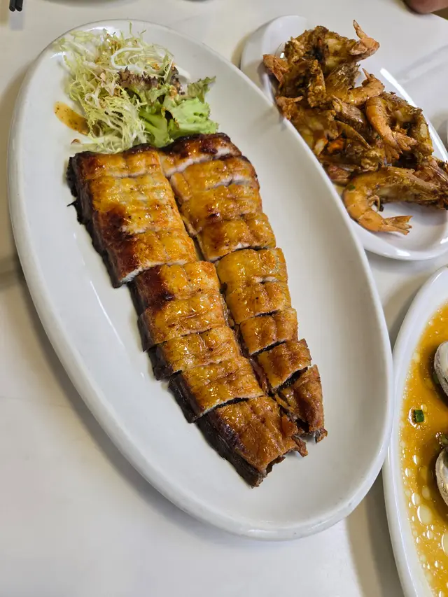 週五晚上朋友帶咗我嚟呢間喺長沙灣嘅海鮮酒家食晚餐🤣見到呢度有好多街坊幫襯亦都有朋友聚會真係非常熱鬧🤣$116「蒜蓉粉絲蒸蟶子皇兩隻」:蟶子皇大大隻非常新鮮肉質爽滑,加蒜蓉蒸就惹味啲啲🤩;粉絲吸收咗蟶子皇同埋蒜蓉嘅汁液就當然非常惹味啦🤣$104「蒜蓉蒸扇貝兩隻」:扇貝都係大大隻,好新鮮,肉質軟熟🤩,加蒜蓉蒸都係惹味啲啲🤩;粉絲吸收咗扇貝同埋蒜蓉嘅汁液就當然亦都係非常惹味啦🤣$112「果皮蒸鮑魚兩隻」:鮑魚亦係大大隻,夠新鮮,肉質爽滑🤩,果皮切幼絲,要嚟蒸鮑魚有淡淡嘅清香,好食🤣$118「招牌至尊燒鵝皇上庄」:燒鵝皮燒到脆脆哋,燒鵝肉肉質軟熟好好鵝味,整體嚟講甘香好食🤩$428「清蒸沙巴龍躉斑」:餐牌寫住約兩斤重,上枱嘅時候用一個好大嘅碟裝住,視覺效果都有啲啲震撼㗎🤣;沙巴龍躉肉質鮮味兼結實得嚟又夠滑,真係充滿 umami,廚師仲蒸到啱啱熟,火候控制得好好👍,加埋芫荽同埋少少甜嘅醬油一齊食,超正🤩$88「拍薑炒芥蘭」:芥蘭菜非常新鮮,廚師仲將芥蘭外邊比較老嘅部份批走,留番落嚟嘅部份就更加鮮嫩,拍薑炒簡簡單單但係已經非常好食🤣…查看更多