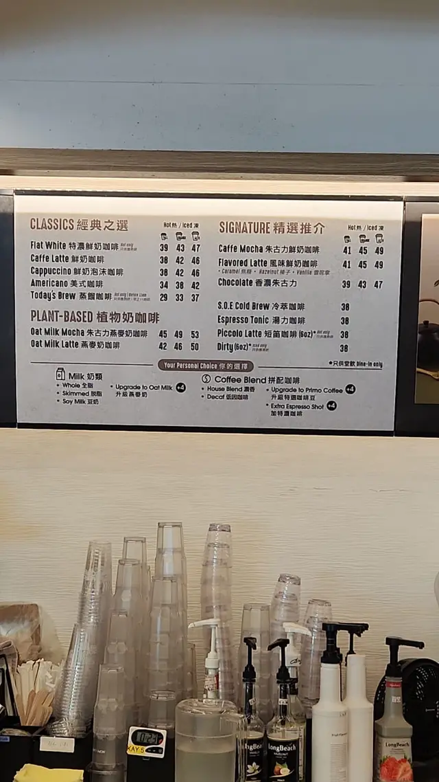 平日基本上冇机会去荃湾,今晚等睇Diana Krall演唱会,咁就早啲去,坐低饮杯咖啡睇吓书。新装修嘅Pacific Coffee变晒灵堂风,本人都系钟意以前红色底加黄灯嘅装修……不过呢间分店嘅优点系,好多座位,但系另一个缺点就系,座位上面嘅咕𠱸都非常之污糟……本人转咗两次位,两个位都非常之冻,应该系同个商场有关。女士就可能要带多件外套先会坐得耐。本人嗌咗Flat white,以为Default系会比瓦杯,点知系纸杯,可能唔够人手洗杯挂。杯咖啡冇乜特别,普普通通,当然就唔会有拉花。去到七点嘅时候,职员同本人讲,个区域要关闭啦……好彩我就已经坐咗一个钟,啱啱坐低又唔知嘅话,应该都会好无奈。