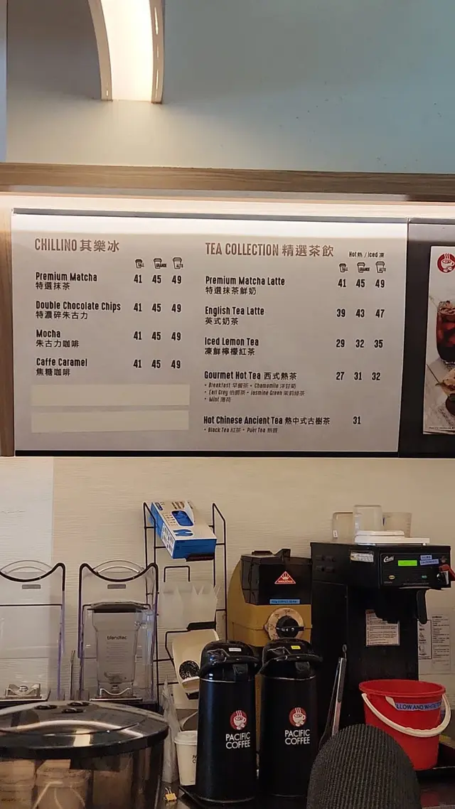 喺如心广场行到 好攰 嘅时候想揾地方坐一坐 ,第一次嚟到这一间 pacific Coffee....同朋友叫咗两杯, 都系叫小甜小冰, 绿茶 latte 同埋 冰冻桃茶。感觉上虽然佢哋有一定嘅 standard ,但系呢间嘅冲泡好似真系唔错, 我朋友都话 几好饮。当然如果你同𠮶一啲专用咖啡 coffee café 好难作同一水准,但 同埋同一品牌呢一间,畀我嘅感觉就真系算系咁, 因为地方算有返咁上下 而且都算舒服, 唯一要弹嘅就系, 声音方面 减声就比较难做得到。但我冇乜要求 ,算系中上已经唔错 下次都会考虑再嚟。