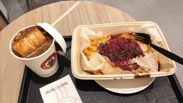 2022 聖誕系列 Pacific Coffee 晚餐 <IVY>等级62023-05-12300 浏览 关注 趁1月中旬新年來臨前,我要提早時間找個週末到荃灣整理頭髮轉新 look!那天週末,我走到荃灣花4小時染髮+焗油,染髮後,其實已經晚上 8:00;於是,我便找找荃灣區的咖啡店!以 <Pacific Coffee> 為例,多數都會下午 6:30 收舖,難得位於如心廣場的分店收晚上 9:00!這間分店還要是荃灣區較靚景及開揚的一間! 樓底高又不侷束!玻璃窗貼滿聖誕裝飾,添置聖誕樹,店內幾有聖誕氣氛!聖誕系列晚餐法式薯仔千層批配火雞片 $65散發濃郁牛油香,令我食指大動!大約盛載半兜薯仔片,粉腍又熱辣辣香噴噴! 我覺得不會好似千層麵那種膩滯感,配上火雞片,並非很薄,質感幾似雞胸肉帶點嚡口! 醃酸的紫洋蔥,反而有解膩作用!熱石板街朱古力 $43 Tall size 我問男店員,石板街朱古力跟平時的熱朱古力有甚麼分別?加入花生成份及棉花糖, 本身石板街朱古力入口不算甜,香濃朱古力香氣! 多了一份花生香,棉花糖浸在熱朱古力便會變得軟腍濕潤,其甜度可滲入飲品中,其實整體都幾 heavy!…查看更多+ 6以上食记乃用户个人意见 , 并不代表OpenRice之观点。赞好分享2022 聖誕系列 Pacific Coffee 晚餐 太平洋咖啡 (如心廣場一期) https://s.openrice.com/QrLT0z4CaW0检举 张贴 评分4味道5环境5服务5卫生4抵食推介美食法式薯仔千層批配火雞片$65用餐日期2022-12-10用餐途径堂食人均消费$108 (晚餐)