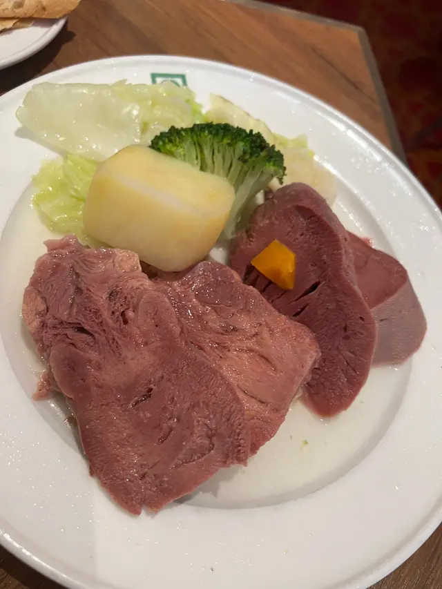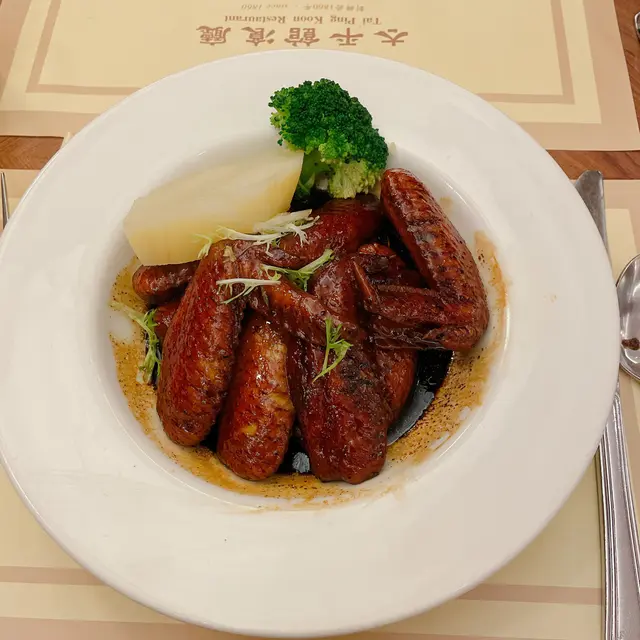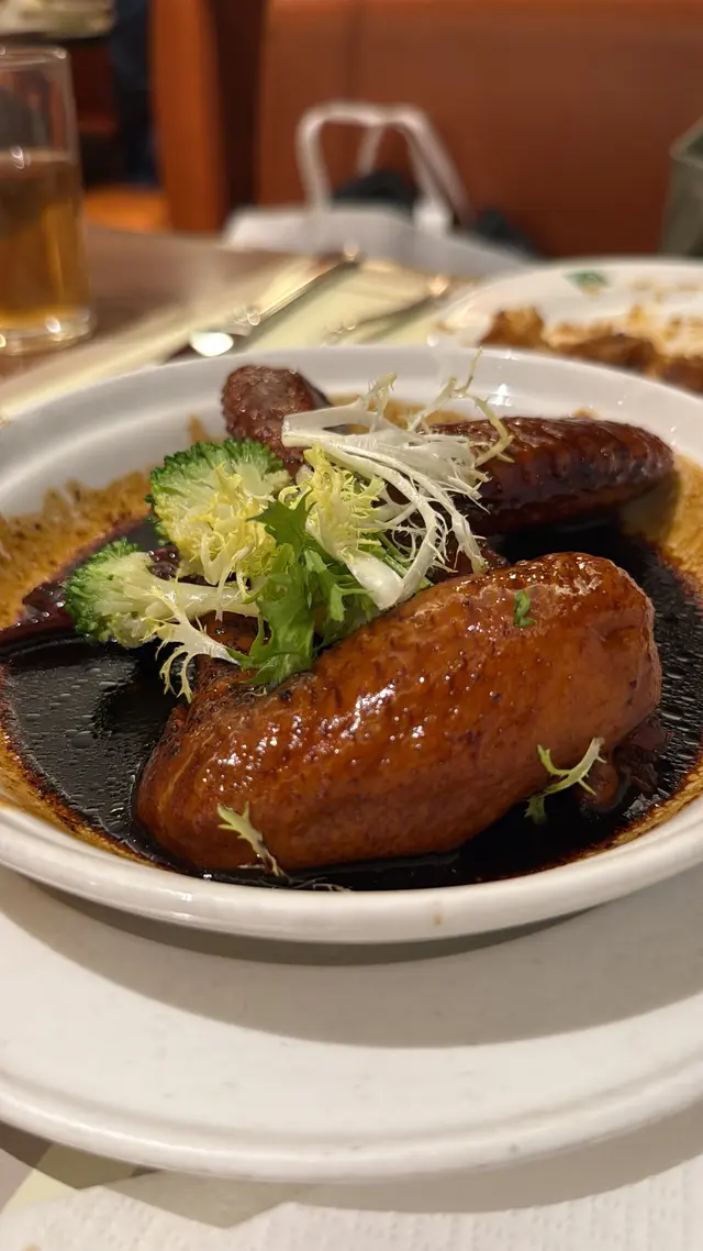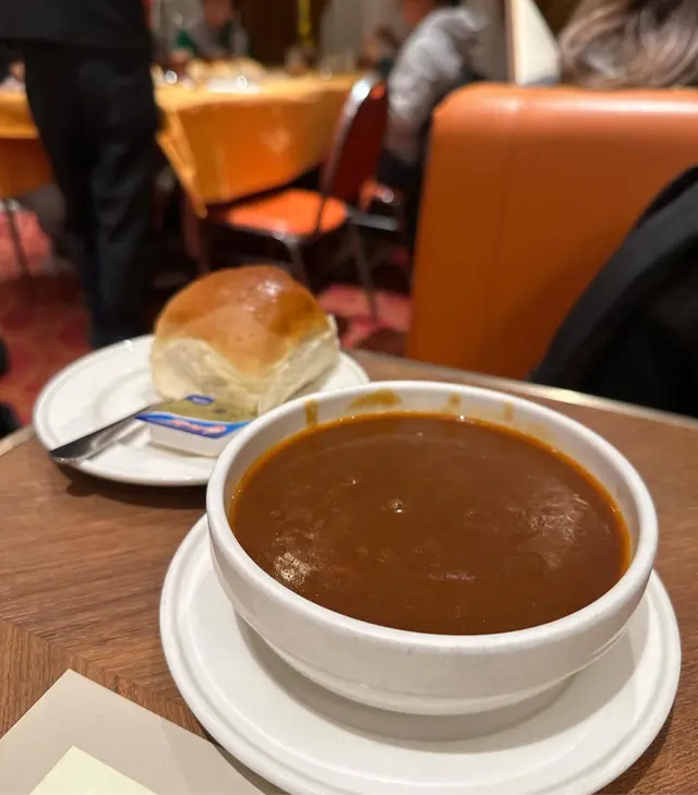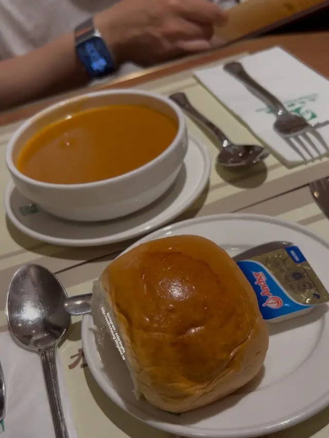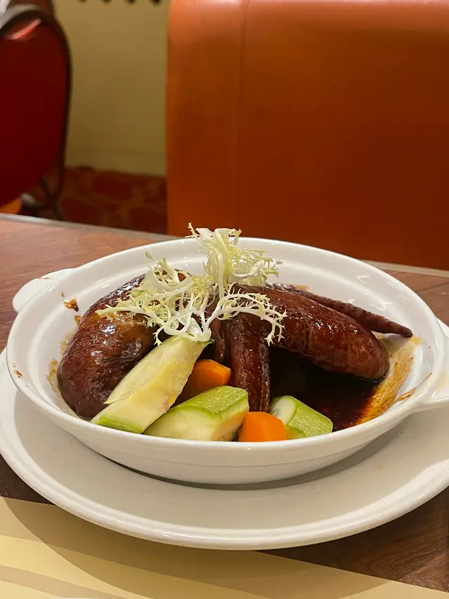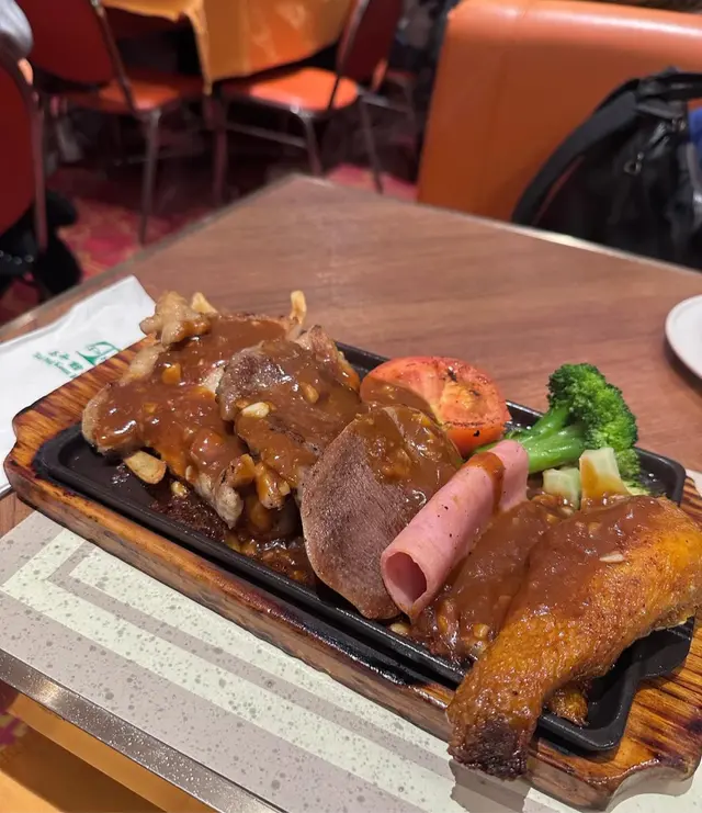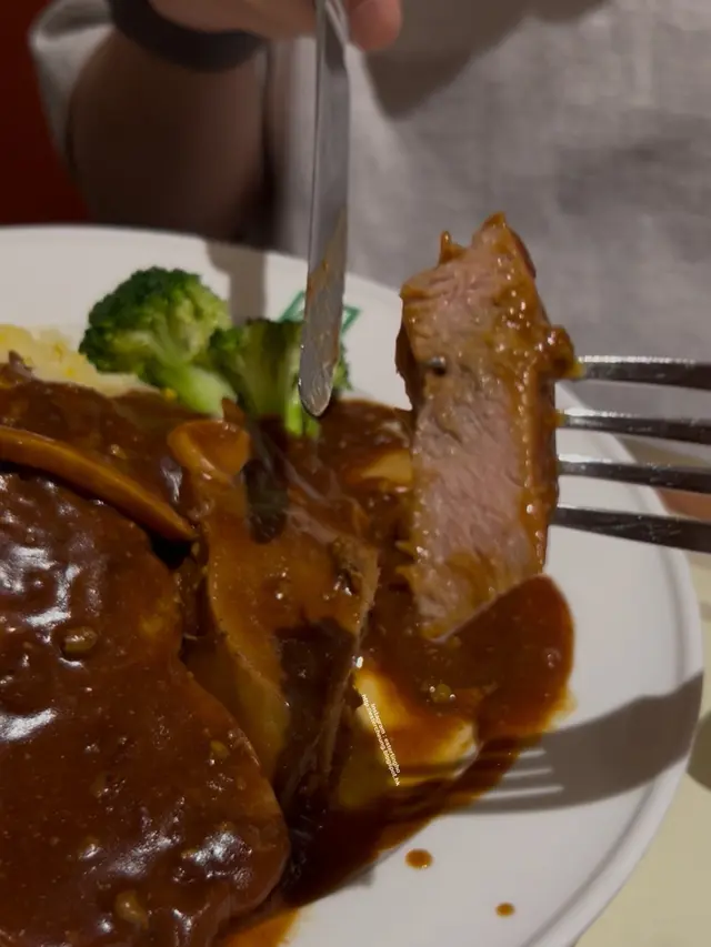 一推門~成個感覺好「懷舊復古風」,但又意外哋,佢哋又幾好生意,可能係星期六,都差唔多『爆』。以前啲人話港式西餐就係豉油西餐,全部嘢都好深色,今晚終於俾我見識到!叫咗個瑞士雞翼餐,西冷牛扒餐同疏乎厘~雞翼餐有沙律或餐湯選擇,跟著三隻瑞士雞翼,同焗豬扒飯,甜品同餐茶。牛扒餐一樣有餐湯或沙律,甜品同餐茶。我哋揀咗各一,餐湯同沙律,餐湯(牛尾湯)~好深色,味道濃~感覺同間餐廳一樣好有歷史感,黑「媽媽」但又唔知咩味,好似煮咗好耐咁。沙律~港式果隻,中間有啲薯仔同雜果,仲有一隻大蝦~呢個好啲。等咗幾個字,終於上呢度比較出名嘅「瑞士汁雞翼」,一樣都係深色,味道唔似我想像甜,反而一啲澀味,雞翼係好滑,但味道真係一般,無驚喜。另一名物~焗豬扒飯,一樣勁深色,味道可以,起碼唔太鹹,豬扒邊有小小焦香同脆邊,一塊豬扒切開幾件,無乜要求下,都可以接受,但係個盤邊,又係有歷史feel, 黑成咁都仲用,又佰年歷史?另一半叫嘅牛扒,由飲完湯到上枱,足足半小時過外,亦都一如一般嘅餐廳,好有儀式感喺你面前淋啲汁上扒度,咁當然係「沙沙聲」,咁好處係無用「鬆肉粉」,但換來嘅係「鞋」同「韌」~正常。無論點樣飽都一定要叫埋另一名物~呢個疏乎厘,真係大大「舊」,唔食得都睇得同打咭得,味道係點,留返俾你自己試。埋單8舊幾。回頭度:4/10唔係佢唔好食,係我呢啲check精唔識欣賞,咁佢哋標榜百年歴史,咁佰幾年前可能真係無咁多好嘢食同無咁多選擇,佢哋梗係高檔野,但現今世代咁多選擇,同咁嘅價錢,後生點會入去?再講啲瑞士汁以前可能啲人自己做唔到,依家乜汁都有現成,自己屋企煮都不會差得過你成舊水幾隻雞翼,一哥豬扒飯都未必差過佢,所以個人覺得呢度真係食「懷緬」。都係果句,呢個價錢,真係有好多選擇。以上純粹個人食後分享,絶無收受任何利益同優惠,亦願意承擔所有責任。…查看更多