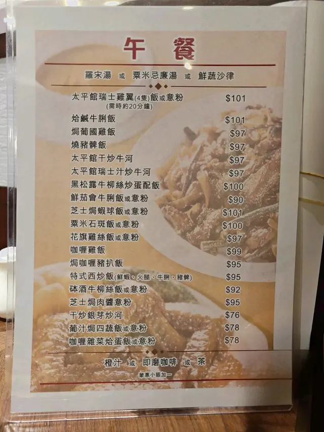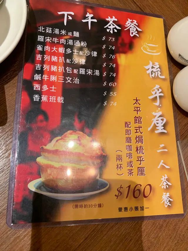 專誠試下喱間老字號太平館餐廳 睇下佢馳名嘅瑞士汁同疏乎厘有幾出色 下午茶時段有茶餐 包凍或熱飲 凍飲唔駛額外加錢太平館瑞士汁炒牛河 喱度出名瑞士汁 當然要試下佢 上碟只見好深色一pat醬咁 賣相麻麻 食落仲好失望 碟河粉䶢到我食咗兩啖已經頂唔順狂灌水 真係同好味扯唔上關係 雖然佢塊牛肉都嫩口 河粉亦炒得幾有穫氣 但真係調味太重手 無辦法支持落去 凍/熱齋啡 用作解膩 唔係即溶咖啡嚟 都幾香濃 唔錯太平館式焗疏乎厘二人茶餐 同樣包兩杯冷或熱飲 一上碟好驚喜 真係好大份 等於我一個頭咁大 不過喱個要有耐性地等待 足足要35分鐘左右 一切開充滿蛋香 面層好似海綿蛋糕咁 中間嘅質地就好似濕濕地 咬落似食棉花糖 圍邊似係焗燶海綿蛋糕咁 每個位都有唔同質感 充滿層次感 但我最愛都係頂層 軟綿綿蛋糕狀 焗到幾香口 中間略嫌濕得濟 入口化開變糖水咁 完全似食緊bbq後嘅棉花糖 喱個價錢我覺得有啲貴 可能覺得疏夫厘並唔係咩名貴蛋糕 我本身亦唔覺疏夫厘係好好味嘅東西 但佢個樣的確係靚嘅 拎嚟打咭都唔錯總括而言 喱間餐廳 我試過一次就足夠 以上兩樣嘢都無令我食過翻噚味 係個疏夫厘嘅size大到咁 叫好特別 但味道就係平平無奇 餐廳格局舒服 全部梳化卡位座 而且侍應們都係打bowtie 白裇衫黑西褲 整體感覺同環境設計都好有懷舊氣息 幾有特色嘅餐廳 有空幫襯下喱間充滿歷史感嘅餐廳都係唔錯選擇 而且侍應有禮唔會似舊冰室咁催人落單 仲可以慢慢坐住等 茶餐好快到 只係要等疏夫厘 食完又唔趕人走 好難得…查看更多