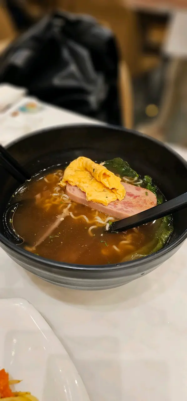港式早晨定食,太興的穩陣之選週末去太興嘆個經典早餐!點了「五星級火腿通粉配炒蛋多士」套餐,一上桌就聞到經典的港式早餐香。火腿通粉湯底清澈卻不失濃郁,帶淡淡雞湯香,通粉煮得剛好彈牙;炒蛋絕對是亮點——滑嫩帶奶香,火候掌握得恰到好處,多士烘得金黃脆口,塗上牛油瞬間融化,邪惡又滿足!搭配的熱奶茶茶香濃郁,奶滑比例平衡,回甘不死澀。整體份量足,環境乾淨,服務效率高,雖無驚天創意卻是穩陣之選。唯獨價格稍高於茶記,但換來舒適體驗值得。若想懷舊又怕「中伏」,太興早餐依然是信心保證!…查看更多