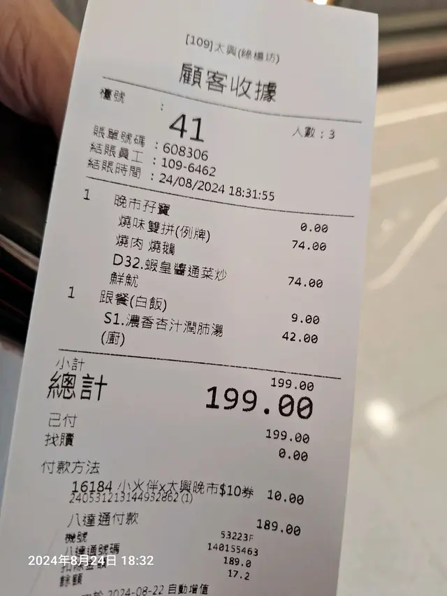 太興 (綠楊坊) (荃湾) 网址: https://s.openrice.com/QrLS0JpqC00 地址: 香港荃灣蕙荃路22-66號綠楊坊1樓F21A號舖 电话: +852 24981608