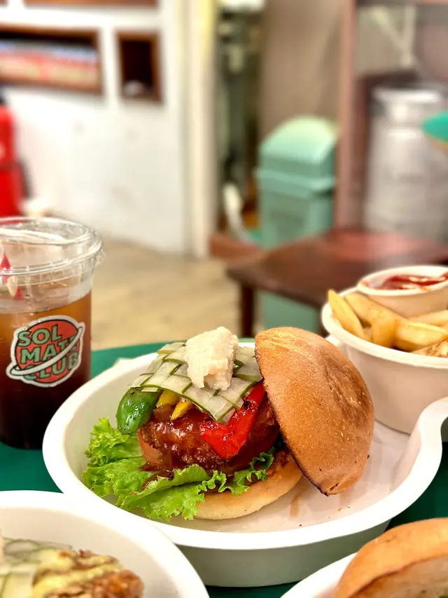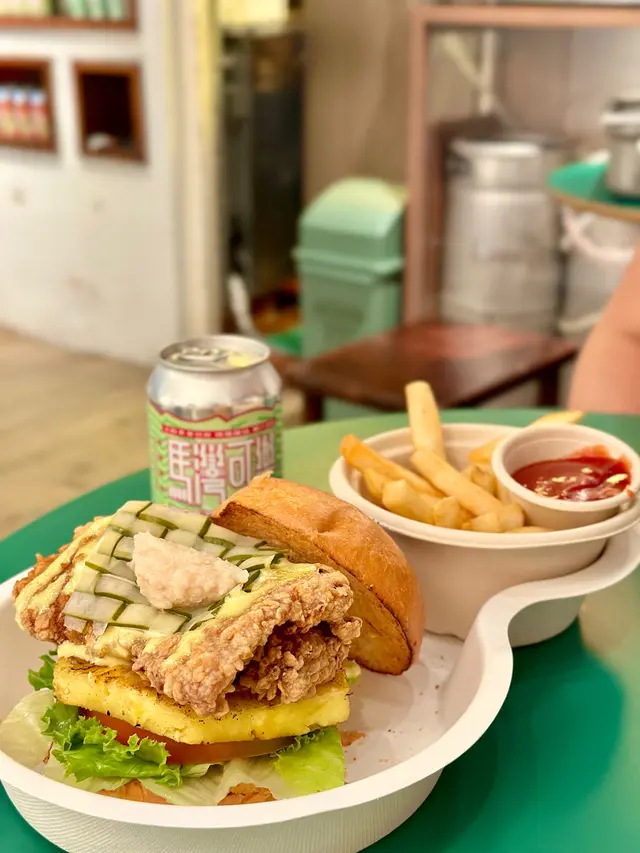 好耐之前去過馬灣嘅一間太陽系委員會原來佢仲有另外一間分店就係位於長沙灣嘅🏀太陽系同學會🏀,雖然呢間比馬灣嘅細好多,不過佢都係一間寵物友善餐廳🐶,裏面主要都係西式漢堡為主,當然唔少得佢哋自家製嘅馬灣可樂🍹啦,佢哋嘅可樂係加入咗玉桂,所以飲落有一種好特別嘅味道👍🏻,我都幾鍾意飲,另外我哋每人嗌咗個漢堡另外加錢有小食分別係雞鎚同埋薯條🍟🍔花生醬牛肉脆煙肉漢堡 $78 :呢度比較特別嘅就係花生醬牛肉漢堡,食落味道幾夾😆又鹹又甜咁嘅特別,牛肉嘅味道都算重,雖然唔係太厚身,不過熟度啱啱好,唔覺靭😌,至於其他配菜都新鮮唔錯👍🏻🍔太陽系雙層魚柳漢堡 $68 :另外叫咗個雙層魚柳漢堡,佢係有兩塊厚身嘅魚柳,炸到金黃色食落唔會太油膩亦都唔會太乾身👏🏻,但整體味道一般,冇咩驚喜,佢哋呢度嘅漢堡都係偏細份,如果食晒成份對我嚟講只係啱啱好雖然呢度地方唔算大,但係可以比毛孩自由走動,冇話規限要坐邊度,環境佈置都幾特別😍,都有啲打卡位,同埋呢度冇低消,一杯嘢飲就可以坐喺室內嘆住冷氣咁同狗狗互動,炎熱夏天又有多一個hea 嘅地方啦👍🏻…查看更多