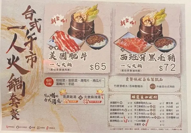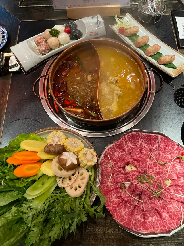 亂入,估唔到又幾好食😝不過環境好迫,感覺衛生差少少——————————————————🔻鴛鴦湯底夫妻鍋(台式麻辣) $108已包豆腐,鴨血,香辣入味❤️美人鍋 (花膠雞湯) $178雞湯濃郁,雞件滑溜,重要好多花膠,正😝🔻日本A3雪花和牛片 $398全餐唯一伏位竟然係和牛🙄賣相又靚又大塊,又點會估到入口柴過樹皮呀🥲普通牛反而重好囉🙈🔻美國excel 手切牛小排 $338比和牛平,但反而重嫩滑!上枱會先淋上酒再點火😳全程慢火一路燒就算放落火鍋淥完都仍然會有少許酒香,幾好食👍🏻不過有小朋友就小心有安全隱患!如果碟中既酒倒瀉都幾危險❗️🔻九孔鮑魚 2隻 $79新鮮彈牙👍🏻🔻團團圓圓 $118豬肉丸、墨魚丸、蝦丸、墨汁丸豬肉丸加左梅菜係最好食既其他正正常常,係墨汁丸有啲腥🤷🏻♀️P.S. 另設自助小食吧枱, 醃蘿蔔爽甜開胃好好食😛——————————————————by C **#sissyfoodie…查看更多