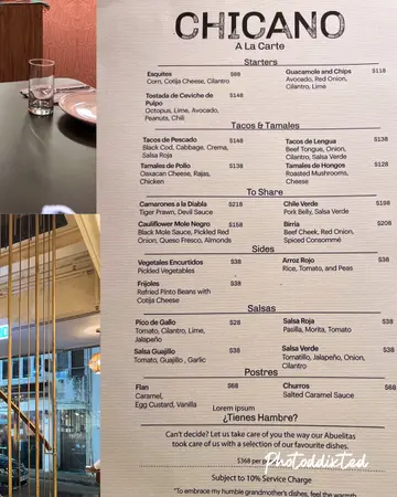 奇卡诺 @chicanohk 📍:上环歌赋街15号地舖🚗:上环地铁E2出口 步行3分钟📞:+852 5595-3334💲:~HKD440/head for dinnerFood quality✔️:Tostada de Ceviche de Pulpo, Tacos de Lengua, Tacos de Pescado, Birria, Camarones a la Diabla👌🏼:Esquites, Margarita, Mojito, Horchata Martini, Tamales de Pollo, Churros总结:😋呢间系间出色嘅墨西哥🇲🇽菜馆 叫咗好几款都冇伏好食 款式虽然唔多但都唔行有几款地道啲嘅菜式 亦有迎合香港人口味😋Esquites其实系墨西哥嘅街头小食 粟米🌽沙律 捞上Cotija芝士同芫荽 味道酸酸地都算简单地开咗美蕾😋Tostada de Ceviche de Pulpo系柠汁腌八爪鱼🐙 本身起源于秘鲁 主要用青柠 配辣椒用嚟腌海鲜 呢度冇腌生海鲜 而系转做熟嘅八爪鱼 加上牛油果同花生 酸酸maymay 好开胃😋今餐最好食系tacos 试咗两款 分别系Lengua牛舌洋葱配埋意大利青酱 同Pescado银鳕鱼椰菜配上红酱 两款都好食 配上青酱同红酱 墨西哥风味好浓 好好食🤤😋主菜试咗Birria即系将牛面颊 红洋葱炖成肉汤 配上红酱同几块taco 牛面颊炖得非常软淋 简单用叉分开就已经一丝丝 好吸引👍🏼😋另一个主菜Camarones a la Diabla 系墨西哥好出名嘅菜式 用魔鬼Diabla呢个字去形容主要系讲火辣香浓嘅智利酱 呢度将呢碟变咗fine dining 虎虾质素一食就知好 佢𠮶魔鬼酱惹味但可惜唔够辣 配唔上diabla 应该系angel先啱🙊🤔Tamales de Pollo系鸡嘅墨西哥粽🫔 配料仲有Oaxaca Cheese同rajas 同华人嘅棕都有好大分别 我哋用糯米 佢哋系用面团包住啲馅料 食落会有点寡同淡 配咗两款酱 有味吊返出嚟🤔甜品试咗西班牙嘅Churros 炸得很刚好 简地咁配埋焦糖海盐酱🤔饮品嘅选择仲多过菜式😂 葡萄酒 非酒精类同埋啲cocktail 叫咗三杯cocktail:Margarita Mojito同Horchata, Martini 酒精味好重 啱哂爱饮酒嘅朋友 但价钱有点略贵🥲😨价钱都略贵 大概要$400/person 不过好食所以可接受…查看更多