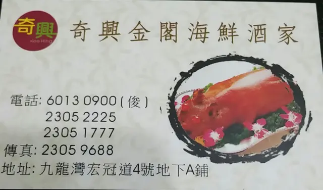 奇興海鮮酒家 (九龙湾) 网址: https://s.openrice.com/QrLS0jj8600 地址: 香港九龍灣臨樂街19號南豐商業中心地下G4號舖 电话: +852 23052225