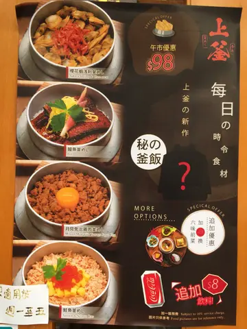 美好的星期五, 当然要好好咁奖励自己同男朋友放工去左铜锣湾食饭就拣左呢间奈良上釜之前系九龙湾试过一间好难食的釜饭其实心里系有啲怕怕但今日呢餐完全冇令我失望!!!