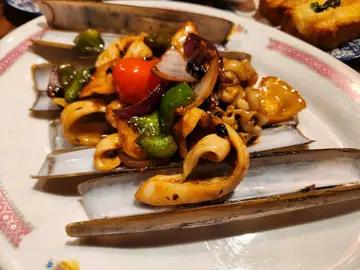 这里的环境舒适,充满了地道的香港氛围。菜单选择多样,我点了招牌的黑松露虾多士,豉椒炒蛏子, 蜜饯薯仔牛柳粒