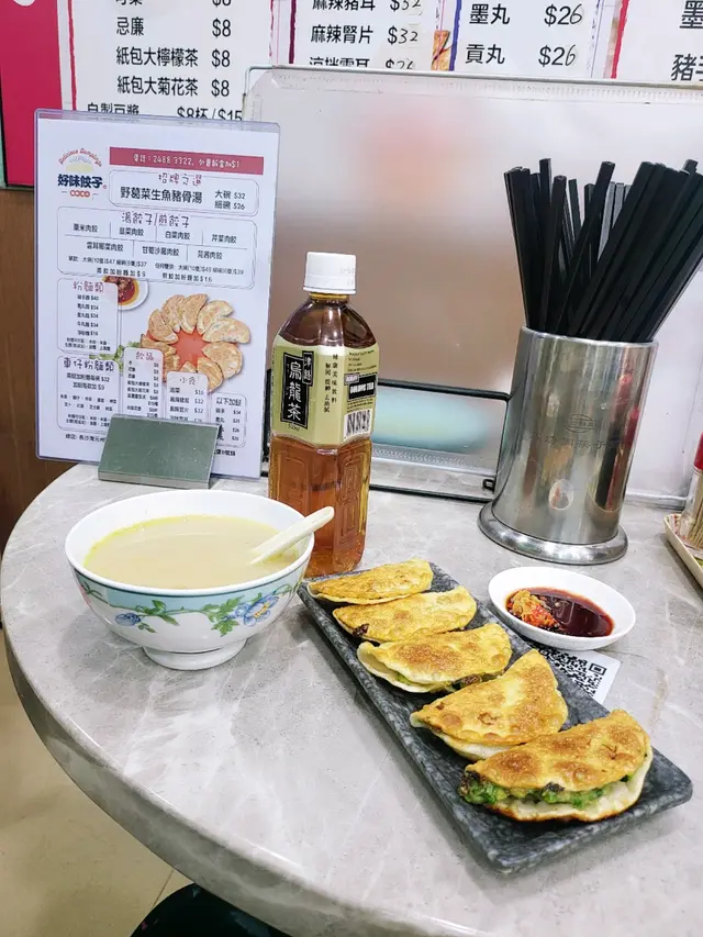 好耐無大大啖食過好食的餃子,難得試到一間高品質街坊餃子小店,一定要支持下地點系長沙灣同荔枝角中間,唔算好就腳,但三點幾幫襯依然高朋滿座,大部分系街坊客湯底註明系粉葛生魚豬骨湯,好純的魚湯味道,無味精好清甜粟米湯餃子$47大食妹大愛粟米餃子,每次食餃子必叫粟米餃子半肥瘦豬肉餡肉質彈牙,加咗粟米味道清甜甘筍粉葛湯餃子$47第一次試甘筍同粉葛嘅配搭,粉葛清脆爽甜,加埋甘筍味道更有層次凍豆漿$8夏天食熱辣辣餃子配返杯清涼豆漿啱啱好…查看更多