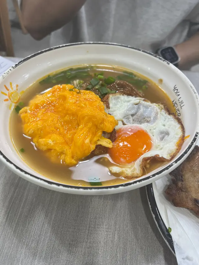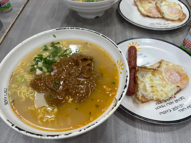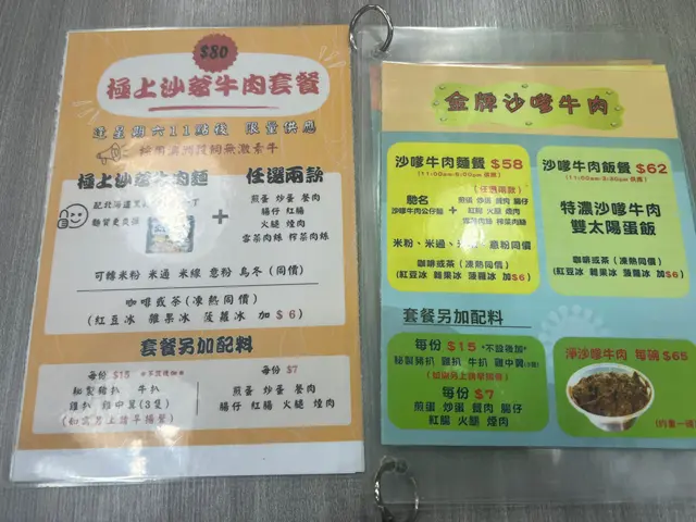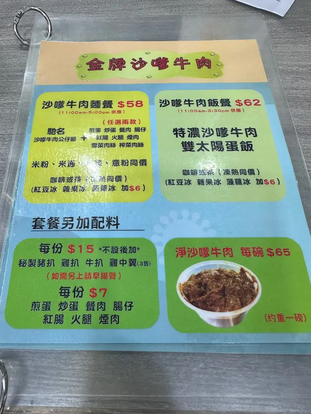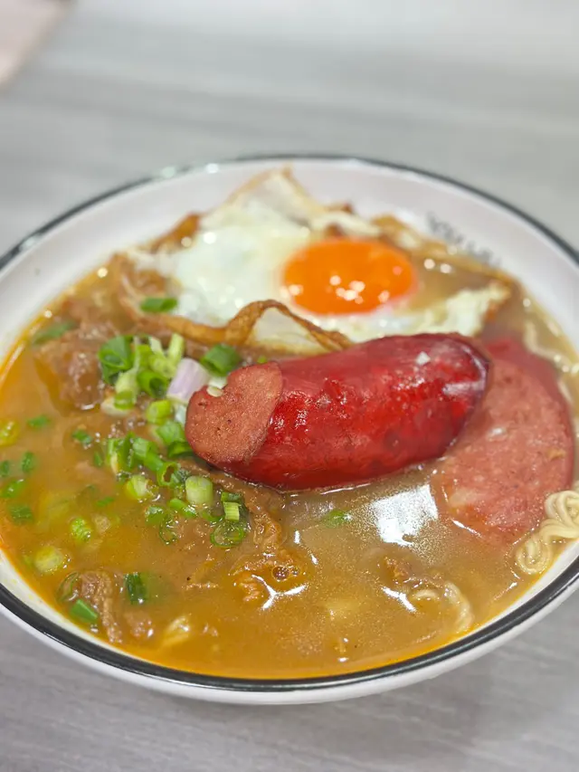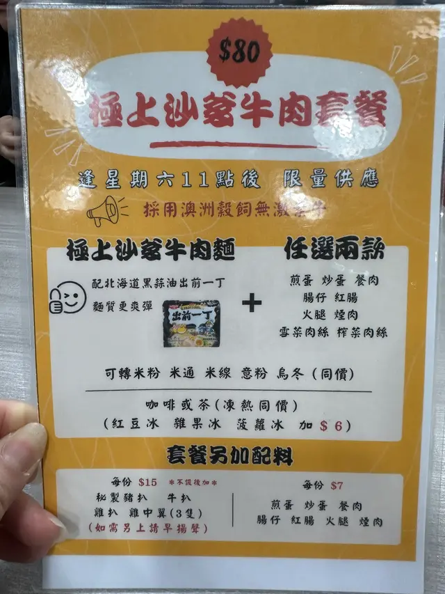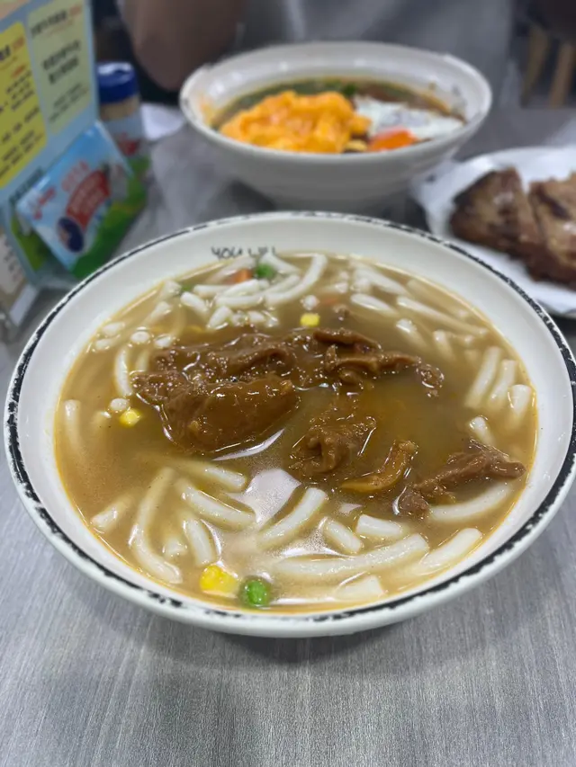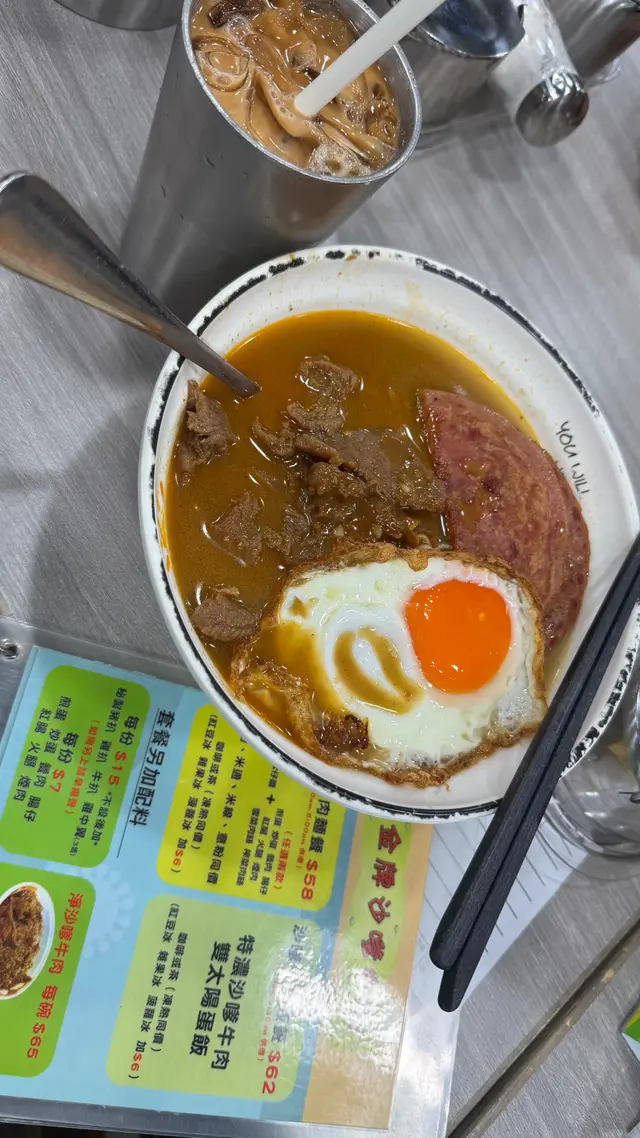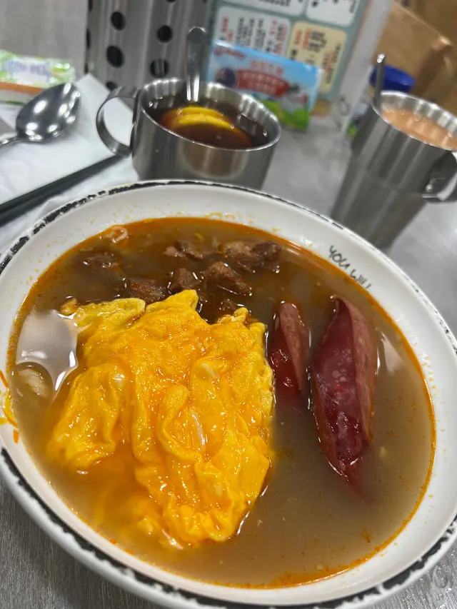 大熱沙嗲牛肉麵嘅其中一間,入到去果然所有人都係食緊沙嗲牛肉麵。👌🏼澳牛沙嗲牛肉麵餐廳話因為澳牛供應短缺,而家只會喺星期六供應。湯底:比起其他沙嗲牛肉麵嘅湯底,呢個好明顯係比較甜,似係落咗好多炒洋蔥。另外花生醬嘅味道都比較突出。湯底味道都濃郁,比較明顯嘅甜味同花生醬味。麵:叫咗蒜油黑蒜公仔麵,但係食落覺得較為軟身。送上咗一包黑蒜油,加咗少少,唔係幾夾。覺得普通公仔麵好過呢個蒜油黑蒜公仔麵。牛肉: 中式牛肉嘅口感。因為同時嗌咗另外一碗普通嘅沙嗲牛肉麵,呢個牛肉確係比較軟身。👌🏼沙嗲牛肉麵評論大致同上面一樣,湯底嘅味道一樣。用咗傳統一般茶餐廳嘅公仔麵,感覺更為配個面。牛肉相對於澳牛就冇咁軟身。客觀而言,都係好味而濃郁嘅沙嗲牛肉麵。但係相對我自己嘅口味,會覺得太甜左一d ,如果再食,會prefer 另外一兩間。…查看更多