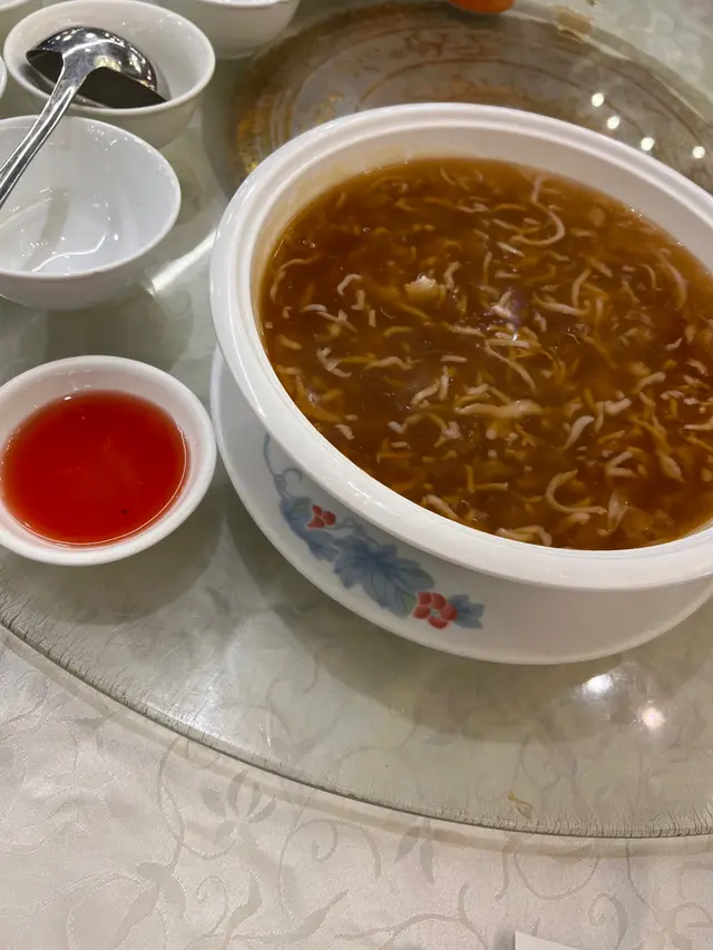 因為家中老人家生日,想經濟實惠又大體,見到好彩有呢個餐,$1980/6位 有齊龍蝦、乳豬、生翅仲要免加一同包酒水,一於試吓早一星期訂枱,用餐日係星期四,book左7:00準時到達,一黎到唔剩等即時有位,人齊後叫服務員上菜。因為家中有兩位BB要放BB車,經理見到我地坐得好迫,即時安排大枱比我地,態度好好但𨍭枱後等左好彩都未有上菜,心知不妙,即時叫人跟跟,原來真係冇入單服務員都好醒目,即時快步去廚房叫人跟,結果等多10分鐘左右終於有菜上喇最先上係個翅,其實呢個價錢都預咗唔會係好多翅,果然真係好少,每碗可能有三幾條咁,但味道有少少怪,可能係發翅過程未處理乾淨有關跟住好快就輪到其他餸菜到,上菜速度有序,每次兩個餸輪住上,大家都唔使食到好趕,咁多嘢食之中上湯龍蝦伊面全家都讚光速清碟大家都食得未夠喉,但個餐仲有一個乾燒伊面,大家都期待食個乾燒伊面補返數,點知個乾燒伊面只食到花生油味,冇原本嘅調味比上湯龍蝦伊面失色好多但總括個餐有成10様菜色,様様份量十足,我地七個大人都食唔哂,其中只有個乾燒伊面同個翅有少少敗筆,但都算合格,始終宜家百物騰貴,呢個價錢冇其他隱藏收費,而且用餐過程遇到嘅所有員工,服務都好主動同有禮貌,如果家中再有飯聚,會再想黎encore查看更多