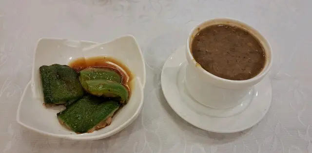 今日同屋企長輩食下午茶。當中下午茶款式唔係特別多,不過價錢都算平同吸引。咁我地叫左個豉汁精釀青椒,懷舊街邊腸粉,菜園班球湯河,香草綠豆沙,菜遠北菇湯麵同上湯腐皮卷,價錢大約10至40不等。份量無話特別大或少,味道正常。當中菜園北菇湯麵算正,粗麵夠勁道。唯一可惜嘅,就係腸粉下低會有個牛油紙痴住嘅腸粉,比較煩。整體黎講不過不失。查看更多