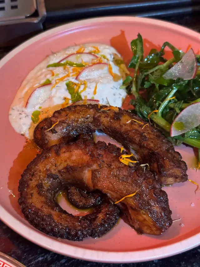 今日去咗中環一間叫「好易食 Holy Eats」嘅餐廳食晚餐,餐廳嘅裝修好有酒吧特色,酒吧上方有個霓虹燈牌,牆身用咗大量嘅特色畫去裝飾,令到成間餐廳嘅裝修風格好有特色🍊 Angus Tartare on Roasted Bone Marrow一定要嗌呢一個主菜,上層係安格斯牛絞肉他他,肉質細膩鮮嫩,混合青蔥、洋蔥粒、特製嘅他他醬一齊食好惹味,最特別係牛骨髓嘅口感好似奶油咁順滑,食落口好似脂肪咁滑,味道非常濃郁惹味,配上脆法包有豐富嘅層次🍊 Scallops Carpaccio薄切生帶子嘅口感入口即溶,單食嘅時候味道清甜,配上旁邊酸酸甜甜嘅蕃茄醬汁、橄欖油、檸檬汁、香草等調味料,味道輕盈而且開胃,而且擺盤非常精緻,好適合做前菜🍊 Crab Cake蟹餅嘅外層金黃酥脆,內裡充滿鮮甜嘅蟹肉,啖啖蟹肉簡直係鮮味爆棚,伴碟有洋蔥粒、紅椒粒、青蔥同他他醬,食落去唔會太乾或太油膩,簡單又精緻🍊 Meat Fries有別於一般嘅炸薯條,餐廳將免治豬肉嘅肉碎、芝士、香草、紅椒粒、洋蔥粒等材料混合一齊,配上口感順滑嘅沙律醬汁令炸薯條口感有變化,香脆得來亦都好惹味🍊 Bacon Mac Zaddy & Cheese升級版嘅Mac and Cheese有大量半溶嘅芝士同奶油,口感好creamy好濃稠,內裏拉絲而表面烤得香脆,中間混合咗好多煎得香口嘅煙肉碎,煙肉嘅油脂同芝士嘅奶香令到通心粉好好味📍中環蘇豪伊利近街23號地舖位置就腳:🍊🍊🍊🍊餐廳環境:🍊🍊🍊🍊🍊食物味道:🍊🍊🍊🍊🍊整體CP值:🍊🍊🍊🍊🍊…查看更多