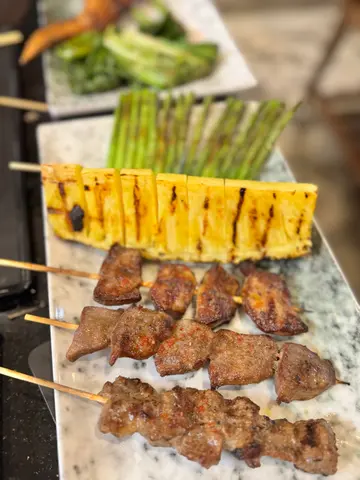 而家好多餐厅都好早关门,想同朋友夜啲出去食嘢吹水都难。太子呢间串烧店「好烧式」真系唔错!开到凌晨两点,铺头喺太子站附近,对住旺角睿景酒店,仲近中港巴士站,交通超方便。环境热闹得嚟唔会太嘈,座位舒服,啱晒同朋友慢慢吹水,唔使赶头赶命。串烧款式多,海鲜选择特别多,仲有唔少佐酒小食。食得出系即叫即烧,但又唔会要等好耐。🐚蒜蓉烧圣子王:👉必食推荐!圣子王真系超大只,系真正嘅king size,做紧$180/2只,以呢个size同新鲜程度而言,好值得食!肉厚鲜甜,弹牙又多汁,食得好满足。🐟盐烧白鳝:鱼皮烧到金黄微焦,鳝肉肥美唔腥,简单用盐烧已经好鲜味。🐷泰式猪豚肉:豚肉肥瘦均匀,配泰式调味几惹味。🍗鸡中翼 & 鸡全翼:外皮烧到香脆,锁住肉汁,腌料味道恰到好处。鸡全翼亦烧得啱啱好,够入味,正!🍖烧鸡胸软骨串:鸡胸软骨烧得啱啱好,咬落去咔咔声,爽口弹牙,口感十足,送酒一流!🥓烟肉露荀卷:咸香烟肉配上嫩滑露荀,口感清甜不腻。🍖鸡软骨:脆卜卜又带点油香,咬落「索索」声,送啤酒真系一流!🥬娃娃菜:烧到软淋淋,菜叶吸咗烧烤香,清甜多汁。🥬蒜芯:烧完依然爽脆冇渣,带淡淡蒜香,解腻一流。🍆原条蒜蓉烧茄子:蒜蓉份量刚好,够香同时唔会太油,食到茄子本身嘅清甜,口感软绵绵。🍄牛油金菇包:牛油香气十足,金菇吸晒精华,爽滑多汁,点泰式酱汁出奇地夹。🐡烧日本鸡泡鱼干:鱼干烧到微脆唔韧,点沙律酱食,嚼劲十足,好岩送酒。啤酒:叫左1664 draft beer,店内仲有好多唔同支装啤酒选择,岩边食串烧边饮。…查看更多