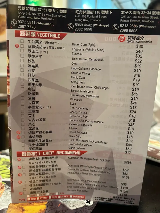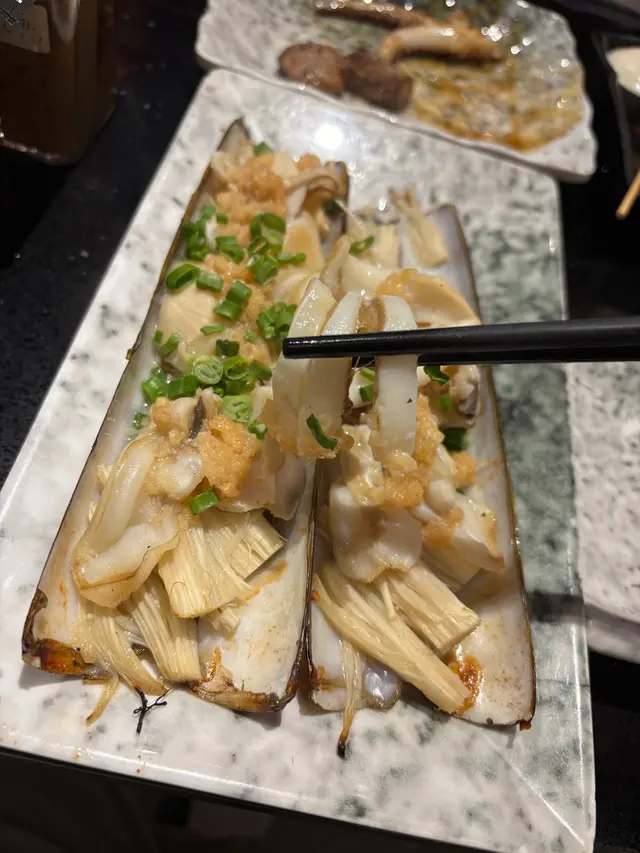 放工後辛勞一整天想找點美食慰勞自己,旺角區餐廳很多,今天想找一些平日比較少光顧的餐廳大快朵頤時間是晚上六時,基本上我是晚市第一台客,店員詳細介紹餐牌以及今天的特價菜式。不消一會兒熱辣辣的串燒便上桌了!牛油焗金菇$40好香的牛油味,加了一點鹽,沒有其他複雜的調味,反而顯得更香香煎鵝肝多士配紅酒汁 $138 / 2件外脆內軟脂香十足,配上紅酒汁開胃解膩蒜蓉燒蟶子皇$138/ 2隻十月份海鮮非常肥美,香口的蒜蓉加上爽甜蟶子,有金菇墊底,吸收蟶子的鮮甜味不消一會兒串燒登場鹽燒牛舌芯$48- 牛舌厚切,彈牙有口感,但又夠柔軟。燒雞腎$20- 爽口但不韌,沾一下泰式辣醬更添風味。燒泰國蘆筍$24- 食串燒多數都是肉類, 加點蔬菜中和一下燒菠蘿$20- 超甜的菠蘿,食完好想再encore燒豬頸肉$20- 與店家提供的泰式辣醬簡直是絕配,肉質爽口安格斯牛肋串$30- 呢個價錢食到安格斯牛肋其實非常抵食,重點是牛味重得來沒有筋也夠林燒白鱔$49- 皮燒得薄脆,但鱔肉不會乾,非常推介蒜蓉燒茄子$40非常惹味的菜式,原條茄子開半,加上大量蒜蓉,孜然及醬料燒至熟透軟身,同叉子一梳又一梳茄子放進口中,香氣四溢!留意返啤酒做緊買一送一,如果喜愛飲啤酒嘅人士飲啤酒最抵! 另外讚一讚侍應快手有禮,非常勤力幫我們清理檯面。…查看更多