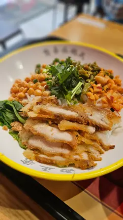 【西环隐世小店】假期同另一半去港岛区漫游,竟然俾我哋发现咗一间宝藏小店——专卖正宗桂林米粉!店面唔大,但除咗招牌桂林米粉,仲有螺蛳粉、汤拉面可以拣,款式多多。🍜 招牌锅烧桂林米粉材料丰富!最正系外皮脆卜卜嘅炸猪肉,配上萝卜干、酸豆角、黄豆、葱同芫茜,捞匀秘制卤水汁,味道层次出晒黎。食到一半再加汤,又系另一番风味,一碗粉两种食法,超抵!🦆 鸭掌螺蛳粉汤底螺蛳味超浓郁,鸭掌煮到入味非常,一啜就骨肉分离。加上酸豆角、炸腐皮、花生、木耳、葱同芫茜,酸辣开胃,口感丰富。🦐 香酥虾卷即叫即制,热辣辣上枱,外皮金黄酥脆,虾肉弹牙鲜味,点埋沙律酱食,绝对系必点小食!🥤 套餐+冻豆浆跟餐嘅冻豆浆豆味香浓。…查看更多
