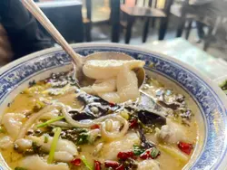 藤椒酸菜鱼-鲈鱼 鲈鱼切片厚薄适中,肉质嫩滑无骨,酸菜汤底每日用鱼骨慢熬制作,唔系坊间用预制酱料或汤包,汤色金黄,饮落入口有层次酸菜爽脆,吸晒鱼汤精华,配汤饮落有微微麻香和酸辣开胃,汤底可以饮,无油腻感,食落很舒服咕噜肉 咕噜肉外层炸到微脆,肉粒入面保持嫩滑,酸甜汁够浓但不腻,每粒肉都挂满汁,配饭一流上汤白菜仔 白菜仔清甜爽口,煮得啱啱好唔会过腍,上汤味道鲜美,菜味清爽,汤底都可以饮,一齐食更突出白菜鲜味