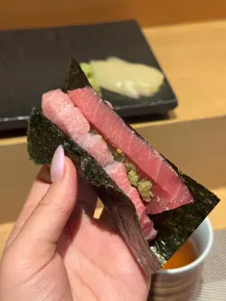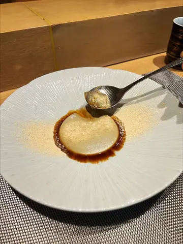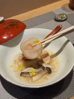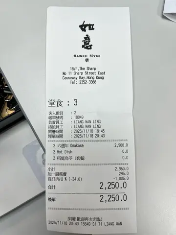 如意Sushi Nyoi 六周年志庆😳佢哋有个6周年优惠,omakase 66折,性价比劲高!特别系师傅喺海胆、拖罗方面绝对唔会手软。前菜三品胡麻菠菜:嫩叶浸润胡麻酱,温润回甘 南蛮渍鱼:京都传承腌渍技法,甜甜地非常之香盐烧银杏:琥珀色果仁佐以薄盐,香浓烤过嘅味道!刺身四重奏 |北海道鲽鱼薄切| 第一件夹住三文鱼籽,第二件火炙鲽鱼边泛起的焦糖香😁第三件海胆筑起鲜甜巅峰|梭子鱼| 火炙轻抚,鱼脂受热之后,带香焦香,佐以三星渍与炸葱丝共舞。|兵库县生蚝| 生蚝鲜甜美味配上伴萝卜泥与醋冻|活赤贝| 贝肉与青柠汁共振,轻轻一拍,突显其新鲜吞拿鱼拖罗三文治❗️大癫❗️紫苏叶裹住霜降级拖罗😱指尖轻握间鱼脂浸润,劲肥劲香劲好食!和食蟹羹煨北海道帆立贝,一打开超大粒帆立贝在蟹黄高汤中,蟹肉香更能带出帆立贝鲜味。寿司四贯 金目鲷:胡椒柚子皮点醒樱粉鱼身牡丹虾:虾膏与樱花虾堆叠出赤霞云海 喜知次:炭火在鱼皮烙下金黄印记 ,简单调味已经系最好食海胆三文鱼子:师傅超大房啲海胆多到满泻!◈ 手卷 「鳕鱼干碎葱吞拿鱼腩」 脆响声中渗出鱼腩油🤩本场手打乌冬,口感软糯,食嘅时候热辣辣即使好饱都要食晒!◈ 甘味 「隐藏版水信玄饼」 菜单未载的彩蛋🤩黑配上糖蜜与黄豆粉。 …查看更多