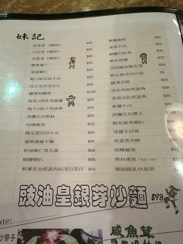 妹記大排檔 (旺角) 网址: https://s.openrice.com/QrLS0tzA300 地址: 香港旺角通菜街1A-1L威達商業大廈Deli2 2樓B號舖 电话: +852 28336228