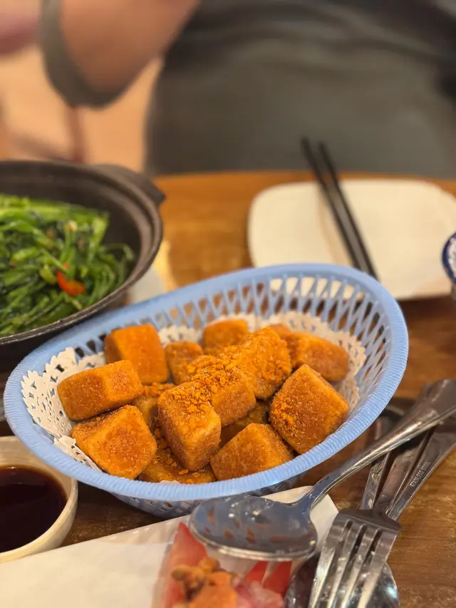 朋友5年冇返香港 約食飯第一時間就諗到要食大排檔平日夜晚去都full house 好彩比我地入到最後一張大枱 但都要搭枱今次5個人食左6個餸 1個炒飯👀黑椒薯仔牛柳粒 👀椒鹽鮮魷 👀豉椒炒聖子(例) 👀蠔仔煎餅 👀瑤柱蛋白炒飯👀西蘭花(帶子炒)👀鬼馬油炸鬼👌🏻樣樣都覺得味道不錯,份量正常👍🏻瑤柱蛋白炒飯都炒得幾乾身有食開嘅frd話一定要叫鬼馬油炸鬼應該係油炸鬼釀左啲魚滑係入面試下都幾有趣👍🏻蠔餅幾得我歡心!夠脆同埋入面好多蠔其他就正常發揮~比埋個價錢大家參考…查看更多