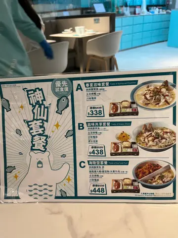 喜欢吃酸菜鱼既我哋,依日就去咗尖沙咀港威商场既姚姚酸菜鱼,推出左几款新套餐,春夏滋味套餐、滋味共享套餐及海陆空套餐等等;入到餐厅,以清新既湖水蓝色为主色调,设计简约有质感,地方阔落,坐得舒适。海陆空套餐 (原价$538,优惠价$448)套餐包括 : 姚姚酸菜鱼 拼 (避风塘大虾/番茄鱼/水煮牛肉) 任选一款、北京烤鸭(半只) 及 川味鸭架。姚姚酸菜鱼 拼 避风塘大虾 招牌菜姚姚酸菜鱼,之前食过觉得好味,今次就尝试一锅两食拼避风塘大虾。呢个系二人份量,个锅超大,材料十足,餐厅用上有认证既鲈鱼,所以食得安心又健康。鲈鱼份量都好多,鱼肉鲜美,嫩滑结实,酸菜爽口,汤汁清甜,好开胃。配搭避风塘大虾,香浓既炸蒜茸,炸到好脆口,虾肉爽口鲜甜,薯条炸至金黄,同样加入避风塘炸蒜,带少少辣,越食越想食。一锅可以食到两种不同款式既美味菜式,真心不错。北京烤鸭烤鸭半只,足够二人份量。热烘烘既饼皮,包裹香嫩既鸭肉及充满油香既鸭皮、青瓜葱丝及秘制甜面酱,口感丰富,令人回味无穷。川味鸭架烤鸭附有川味鸭架,拆肉后既骨,连骨带少少肉一齐食,肉嫩有汁,淋上好辣油,香辣惹味。…查看更多