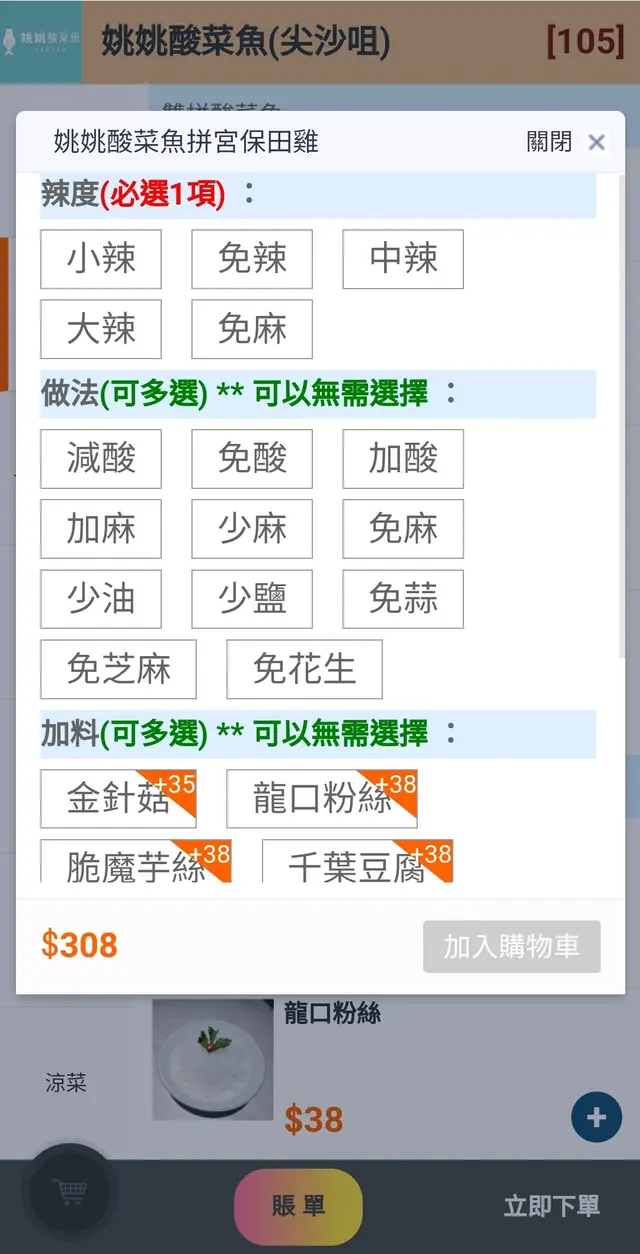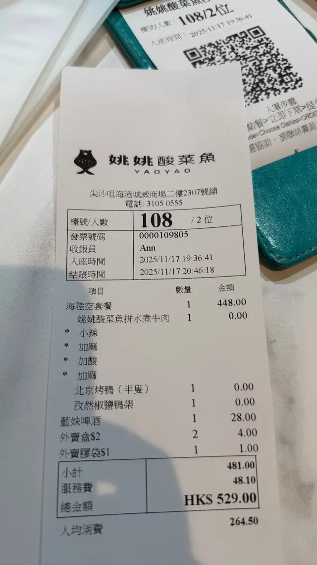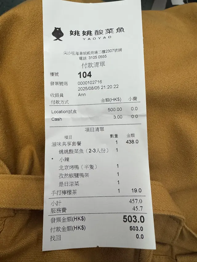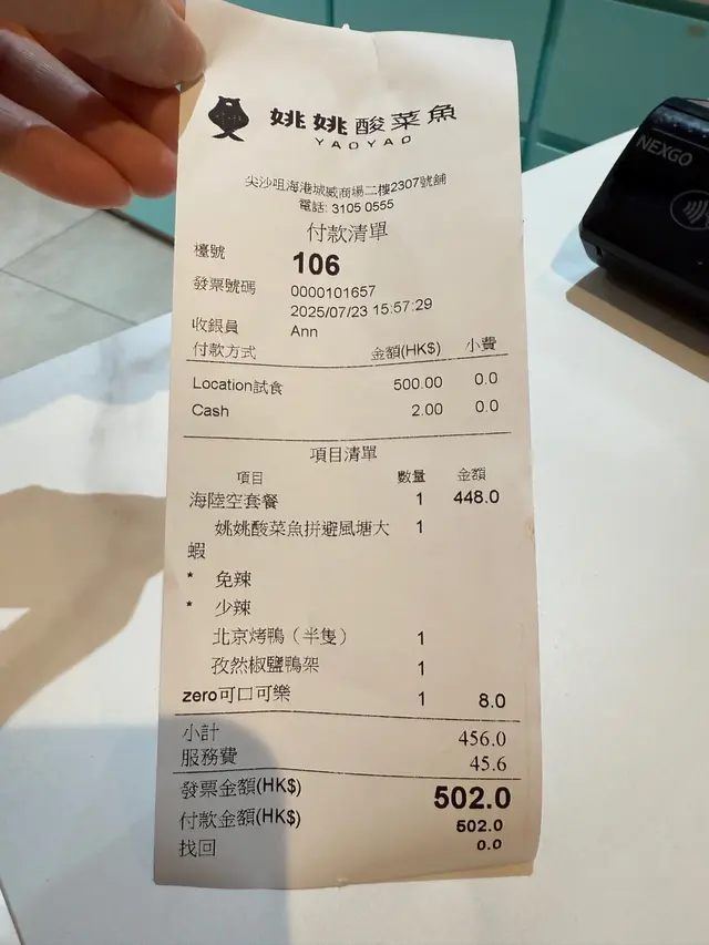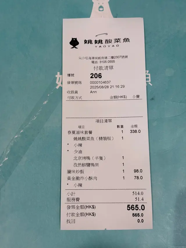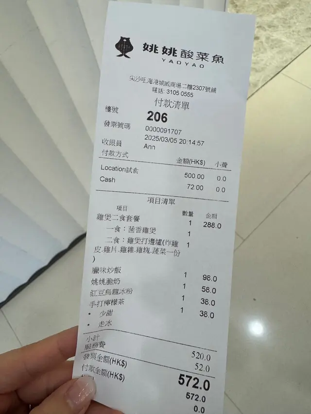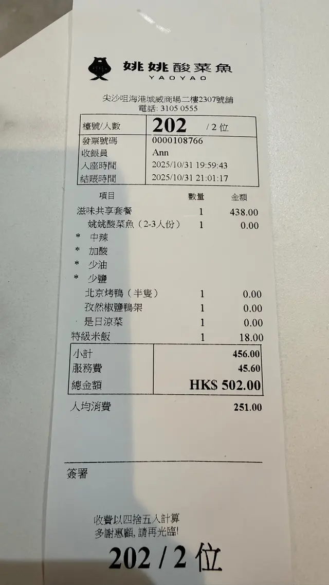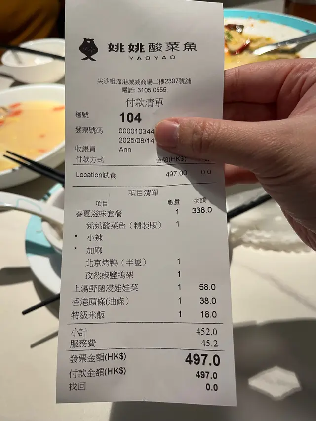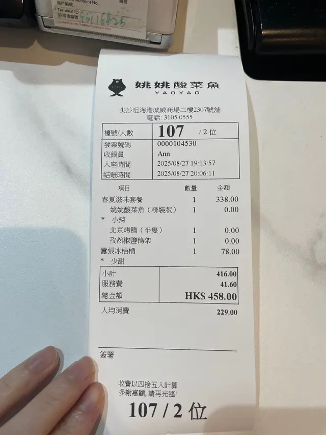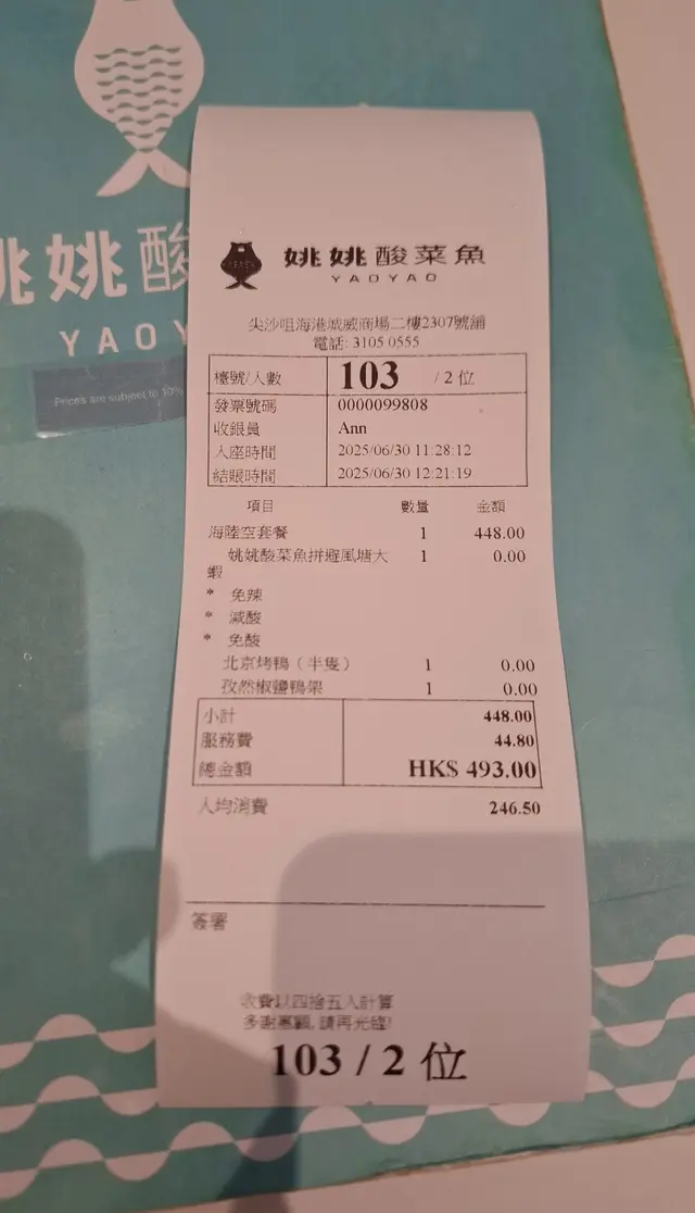 姚姚酸菜魚 (港威商場) (尖沙咀) 网址: https://s.openrice.com/QrLS0Qq4B00 地址: 香港尖沙咀廣東道3-27號海港城港威商場2樓2307號舖 电话: +852 31050555