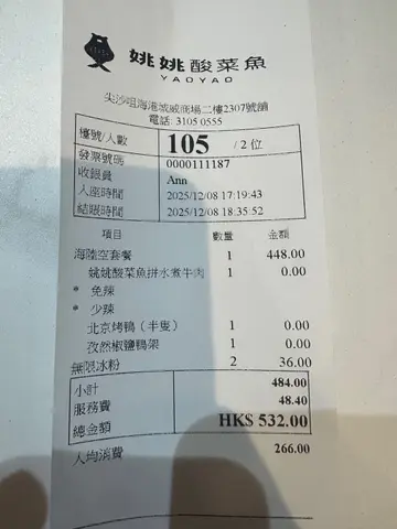 今晚嚟到我最爱嘅姚姚酸菜鱼,久未重逢嘅味道,以前食过觉得酸辣口味比市面上嘅酸菜鱼更出色,可以客制酸度、辣度、油量,有得拣先系Boss😎滋味共享套餐 滋味共享套餐$438超值共享,适合2-3人食,内里姚姚招牌酸菜鱼、北京烤鸭、孜然椒盐鸭架同凉菜酸辣土豆丝,川菜风味层次分明,从酸辣开胃嘅凉菜到主菜,好啱朋友聚会,份量足够一餐满足,性价比高到爆,食完觉得值回票价!🥔 凉菜 酸辣土豆丝 凉菜酸辣土豆丝清脆开胃,土豆丝切细炸脆爽口,配红辣椒丝、蒜蓉同醋汁拌匀,酸辣微麻带香蒜味,土豆脆口解腻提神,开头一碟即刻刺激味蕾🙂↕️🐟 姚姚招牌酸菜鱼 姚姚招牌酸菜鱼系米芝林推介经典!用国家认证新鲜鲈鱼片厚实弹牙无刺,鱼肉嫩滑鲜甜无腥,配24天发酵水东芥菜酸爽开胃,汤底酸辣适中带麻香,配料如豆芽、酸萝卜同酸菜份量丰富,热辣辣上枱,每啖鱼片浸满汤汁超过瘾,开胃一流,辣度可选小辣啱香港人口味,绝对系套餐亮点🤩🦆 北京烤鸭 北京烤鸭半只脆皮香口!鸭皮烤到金黄酥脆油脂丰富但唔腻,配鸭肉薄片、薄饼、青瓜、葱丝同甜面酱卷埋食,脆皮咬落喀滋喀滋,肉质嫩滑带淡淡烟熏香,酱汁甜咸平衡解腻,半只够晒分享,传统北京味正宗,食完觉得高级又满足,好啱钟意鸭嘅你🤤🔥 孜然椒盐鸭架 孜然椒盐鸭架香辣惹味,鸭架用剩余鸭骨炸脆后炒,配孜然粒同椒盐调味,香气扑鼻带麻辣鲜香,鸭肉入味松软骨头易啃,孜然味浓郁开胃,椒盐脆脆解腻,份量大啖啖肉好过瘾,川味风格辣度适中,食落暖呼呼,完美利用鸭架唔浪费👍🏻…查看更多
