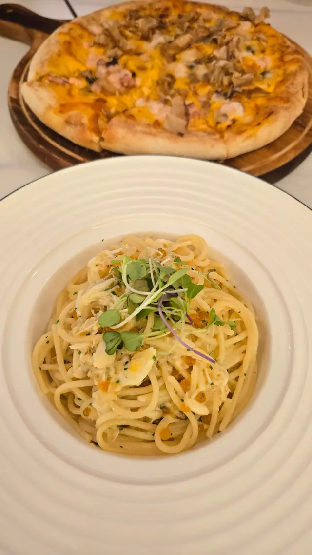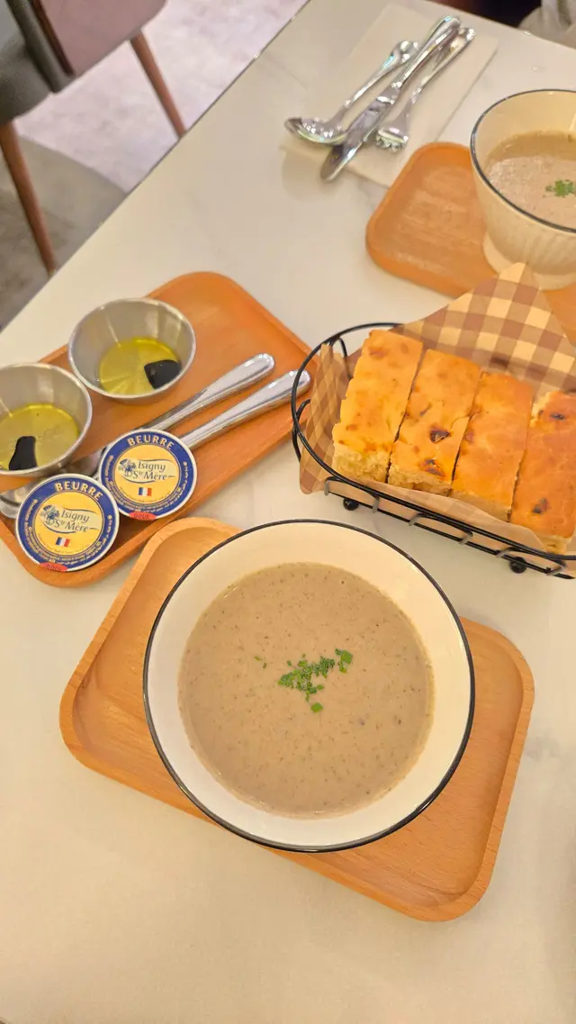 早前發現左喺元朗大馬路附近有間新開既餐廳《Wellington Grill & Bar》,格調不錯,主打西餐和扒類,價位都正常合理,一於試試啦。驟眼看以為餐廳細小,原來內裡別有洞天,一條歐式樓梯通往樓上雅座。圓拱形牆身設計,令整體多一點歐陸感覺,座位亦寛濶舒適。柯打了二人套餐再追加一碟意粉,開展Fine Dining之旅。二人套戲包括沙律、餐湯、主菜、飲品和甜品,都幾豐富。餐湯點了龍蝦湯(加$48)和洋蔥湯((加$28),另配上香醋沙律菜和餐包作頭盤。龍蝦湯🦞香濃順滑,充滿龍蝦的咸鮮味,還隱隱喝出有點酒香和回甘,驚喜地不會過咸,還有龍蝦肉口感豐富。洋蔥湯充滿一絲絲洋蔥絲,甜辣香濃。美國谷飼西冷牛扒🥩牛扒都幾有份量,足夠2人食。外層焦香,內裡肉質稔軟,肉味和油香混和,味道濃郁。另附有燴原粒蒜頭和薯條,很欣賞他們把醬汁和薯條分開上,要落幾多自己決定,又不怕薯條浸淋了影響口感。意式辣肉腸薄餅🍕味道是很經典的一款pizza, 面層的辣肉腸沒有烤得太熟,反而能吃出肉腸的香味,加上茄醬和芝士,是無敵組合。餅底厚薄適中,帶有麥香。龍蝦扁意粉🍝原條龍蝦尾拆肉煎香,口感彈牙,十分鮮甜。扁意粉用龍蝦汁燴煮,保留了彈牙口感,把醬汁完美掛上,每口都濃郁鮮味。甜品選了伯爵茶巴斯克蛋糕和木糠布甸🍰。蛋糕充滿了伯爵茶香和淡淡柑橘香氣,質地順滑creamy木糠布甸有淡淡忌廉奶香,富空氣感,口感輕盈。值得一贊仲有店員的服務態度殷勤友善,而且上熱食時碟子是熱的,上甜品時碟子是冰凍的,可見他們一絲不苟的態度。…查看更多