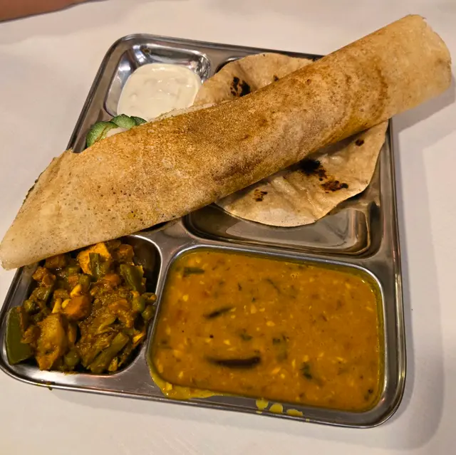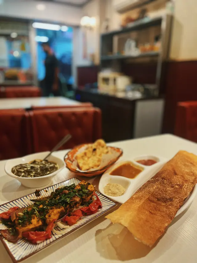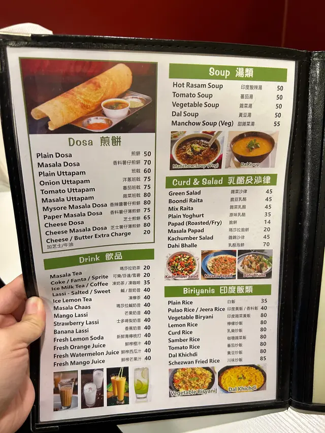 依間嘢第一次食,因為平時食開尖東嗰間。尖東嗰間偏貴又要加人,咁我咪試吓依間。依間座位都算舒服,唔似地下嗰層嗰啲街檔,但唯一不足係冷氣唔夠,同埋夥計冇咩笑容。不過算啦。今日叫咗個芝士咖喱,一個蒜蓉烤餅,同埋一個dosa 。佢嘅味道同尖東嗰間都差唔多,但價錢起碼平三成,因為佢唔需要加人一。蒜蓉烤餅食得出係新鮮整嘅,芝士咖喱好夠芝士,唔似有啲餐廳係得三四粒。會推介比朋友食。到最後食完埋單,都發生咗件搞笑事,明明佢要找$5俾我,點知走咗$6 ,我同佢講找多咗一蚊。佢仲話本身個一蚊係我手。