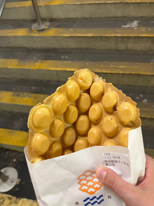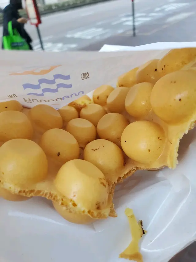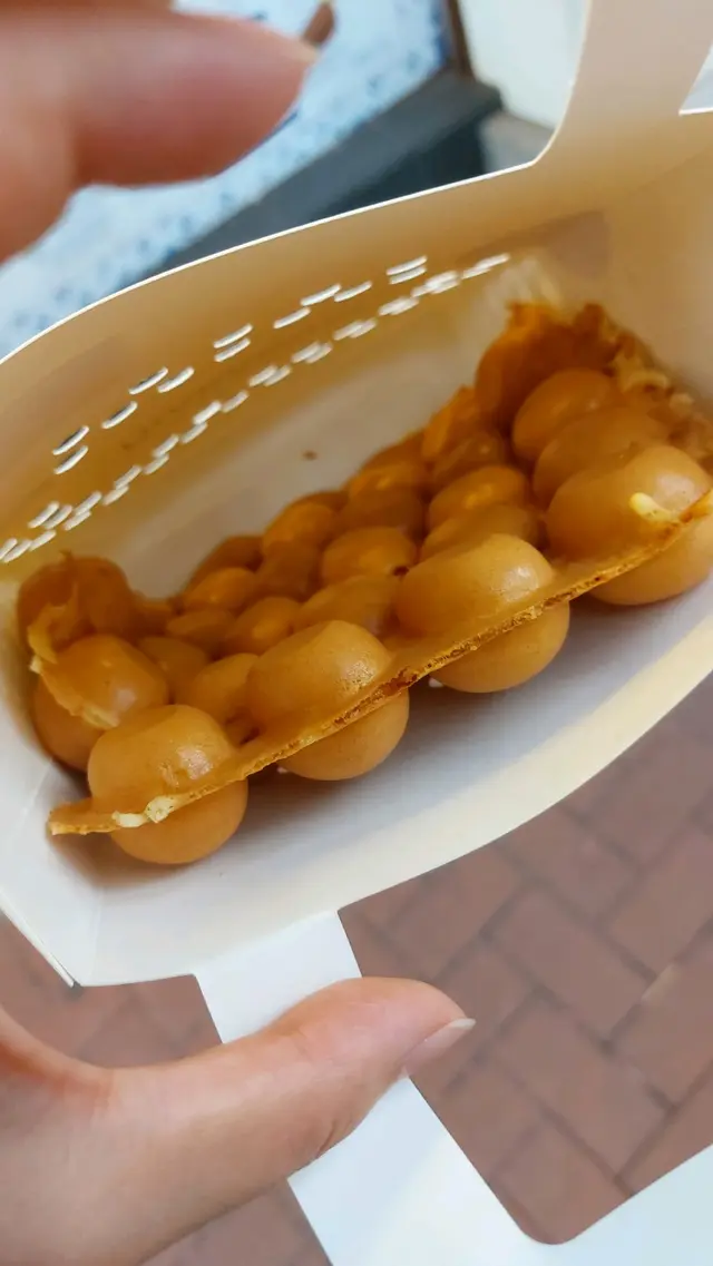 之前去中環行街果陣特登行去過中環街市買鷄蛋仔,係街市入邊,穩左一排先穩到,去到得一個女仔係出面點單,擔心要等好耐,叫做個原味雞蛋仔,20,其他加野或者係其他味就再貴少少,剛出爐好脆,雞蛋仔入面濕潤,凍左之後煙靭,好好食,我比較中意凍少少之後先食既,但係記得唔好扎埋個袋子口,係!要袋既話落單果陣就要出聲,姐姐比較無耐性。查看更多
