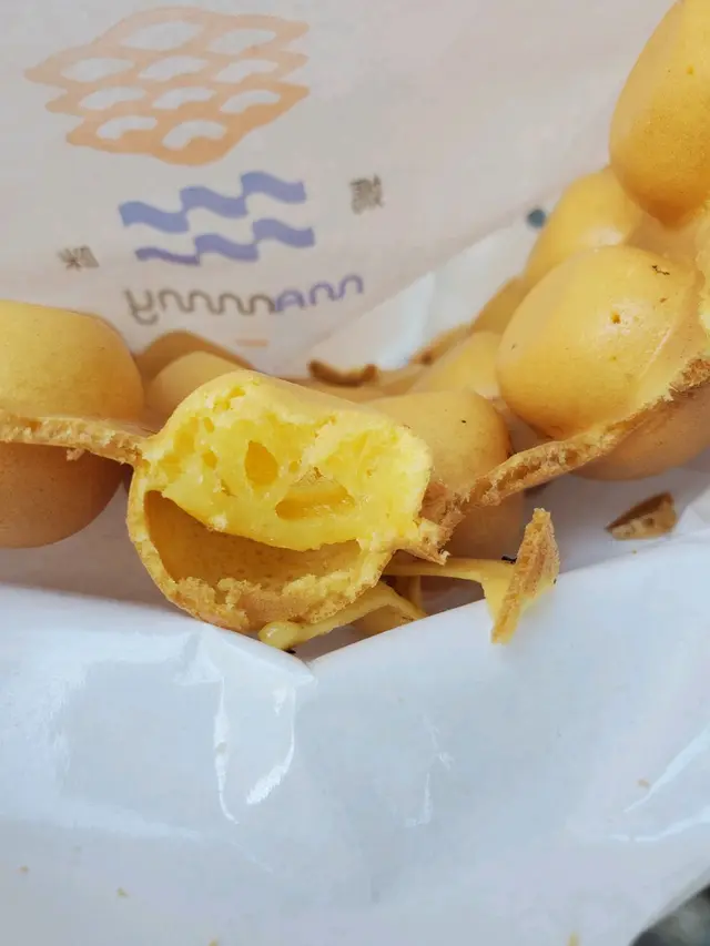 因為網上很多人推薦,而她也有不少分店,令我相信她的出品不會令人失望,但試過之後,就不能理解為何這麼多人力推這雞蛋仔店?點了原味的雞蛋仔,$22光滑的外皮, 不太金黃,像烘得不夠時間,餅皮不是香脆,有點兒硬 ,像有點疏了氣的餅乾,有點像吃水泡餅,有點兒韌,更加不用談彈性。 內餡部分做到半空,內餡不是軟綿,而是煙韌的口感,有點黏口,整體而言偏乾,不夠濕潤而最失色的是其雞蛋仔毫無蛋味,即是在等候時,也嗅不到蛋香。她唯一的好處是不會太甜。 查看更多