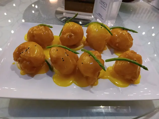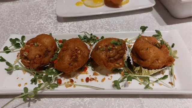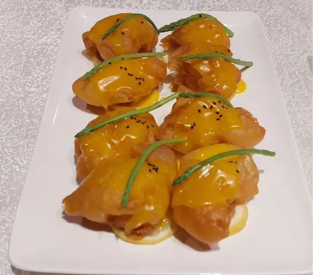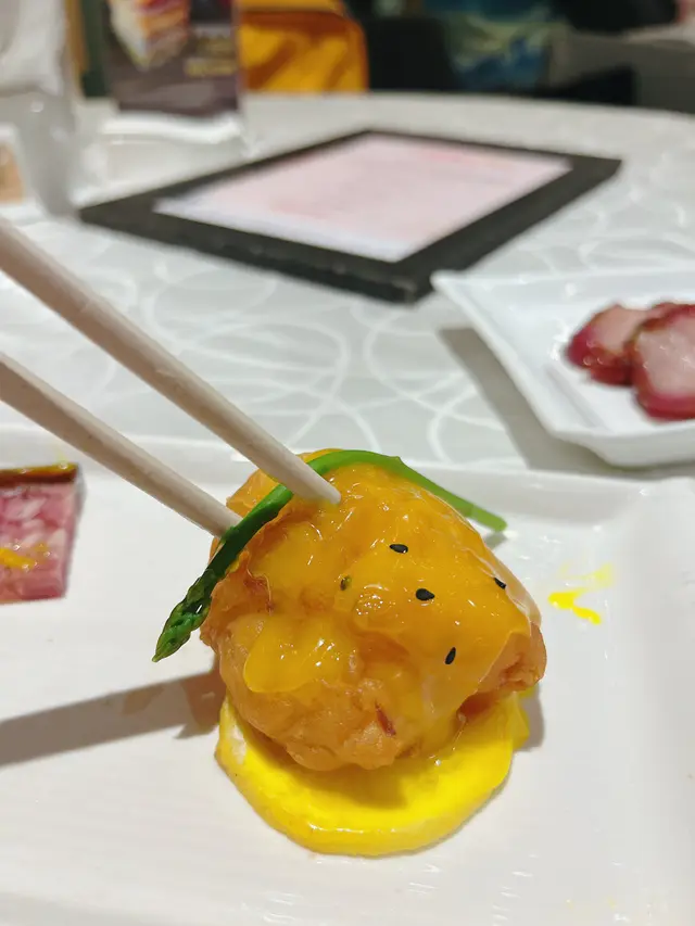 艷影蝦球,算是這家招牌菜式。是有點像炸雲吞的美味版配以芒果汁,吃下開胃香脆,一碟6件,必試