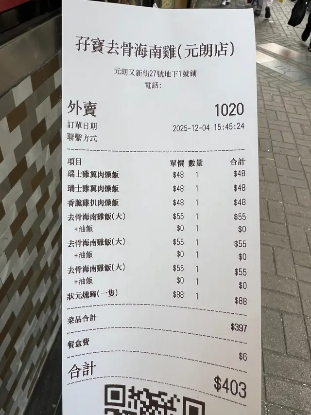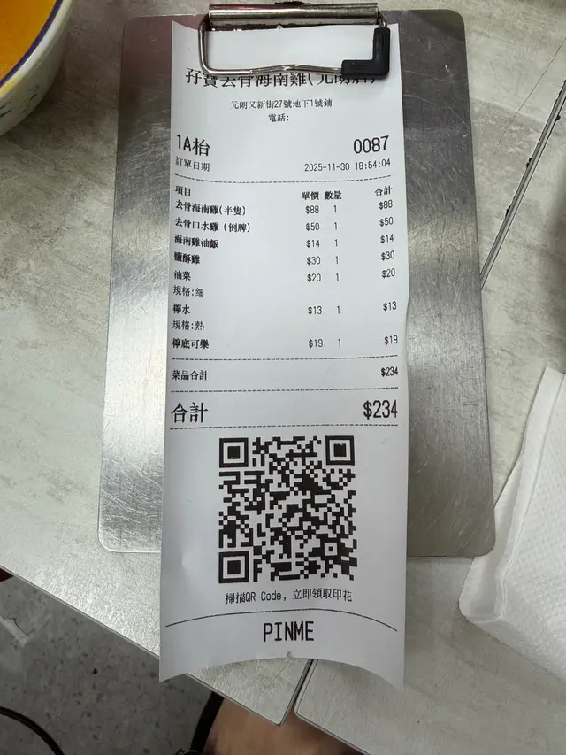 孖寶去骨海南雞 (又新街) (元朗) 网址: https://s.openrice.com/QrLS02zI0W0 地址: 香港元朗又新街27號地下1號舖 电话: +852 26909392